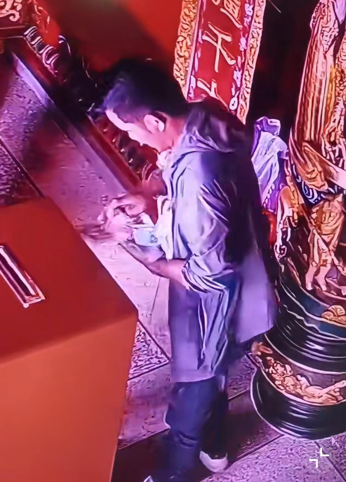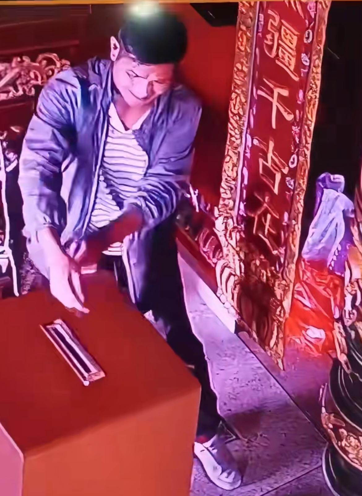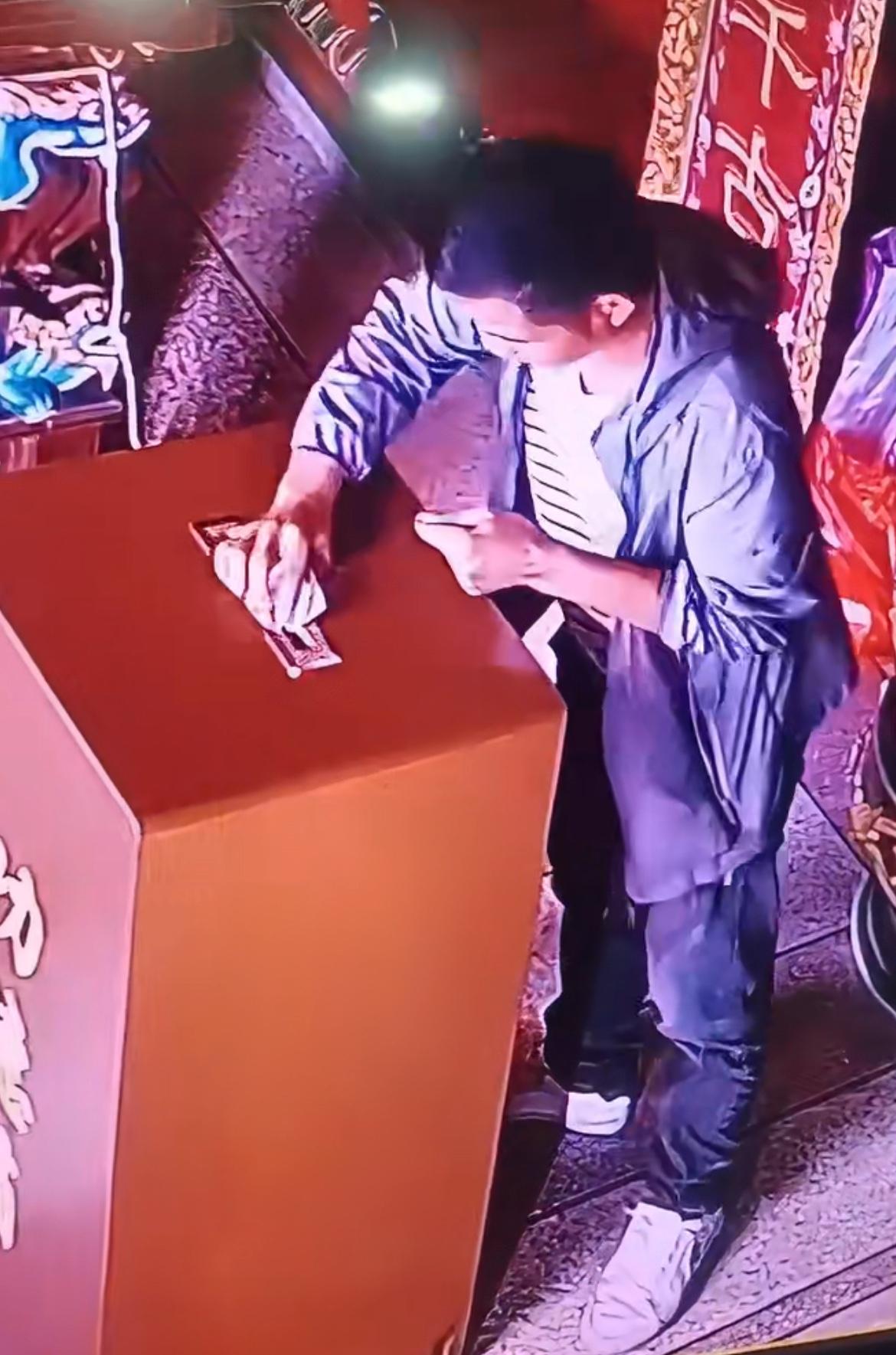 外面偷不到现金,小偷打起了庙里功德箱的主意,只见他用一个粘鼠板一头吊着绳子,另一头把粘鼠板放到功德箱里,各种红票子、绿票子就被粘到板子上,绳子提拉上来,就是一把钱,再重复上述动作,一下子就把功德箱里的钱卷干净了。小偷,佛祖就在上面看着,记得走的时候向佛祖磕个头,暂时借点钱花,将来发达了加倍奉还。小偷 金质灵猫捕鼠器 偷藏宝物 抓奖箱