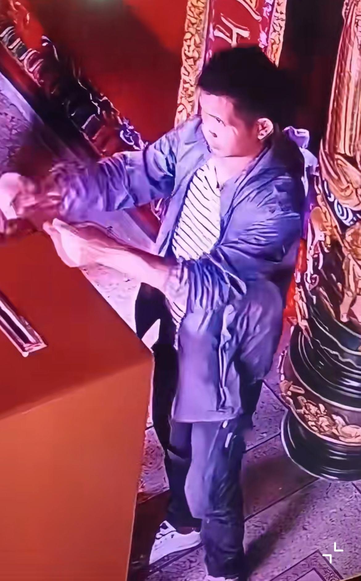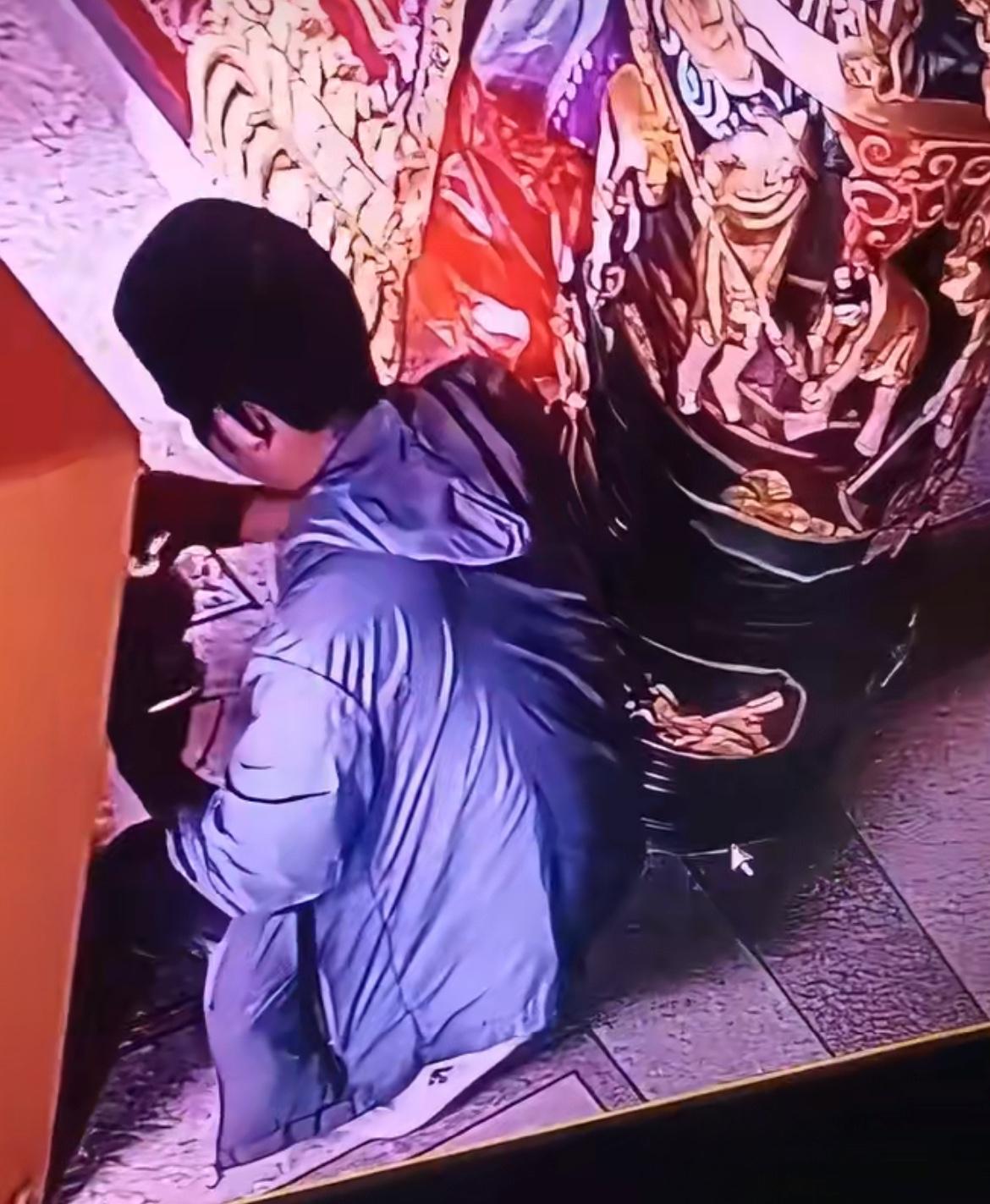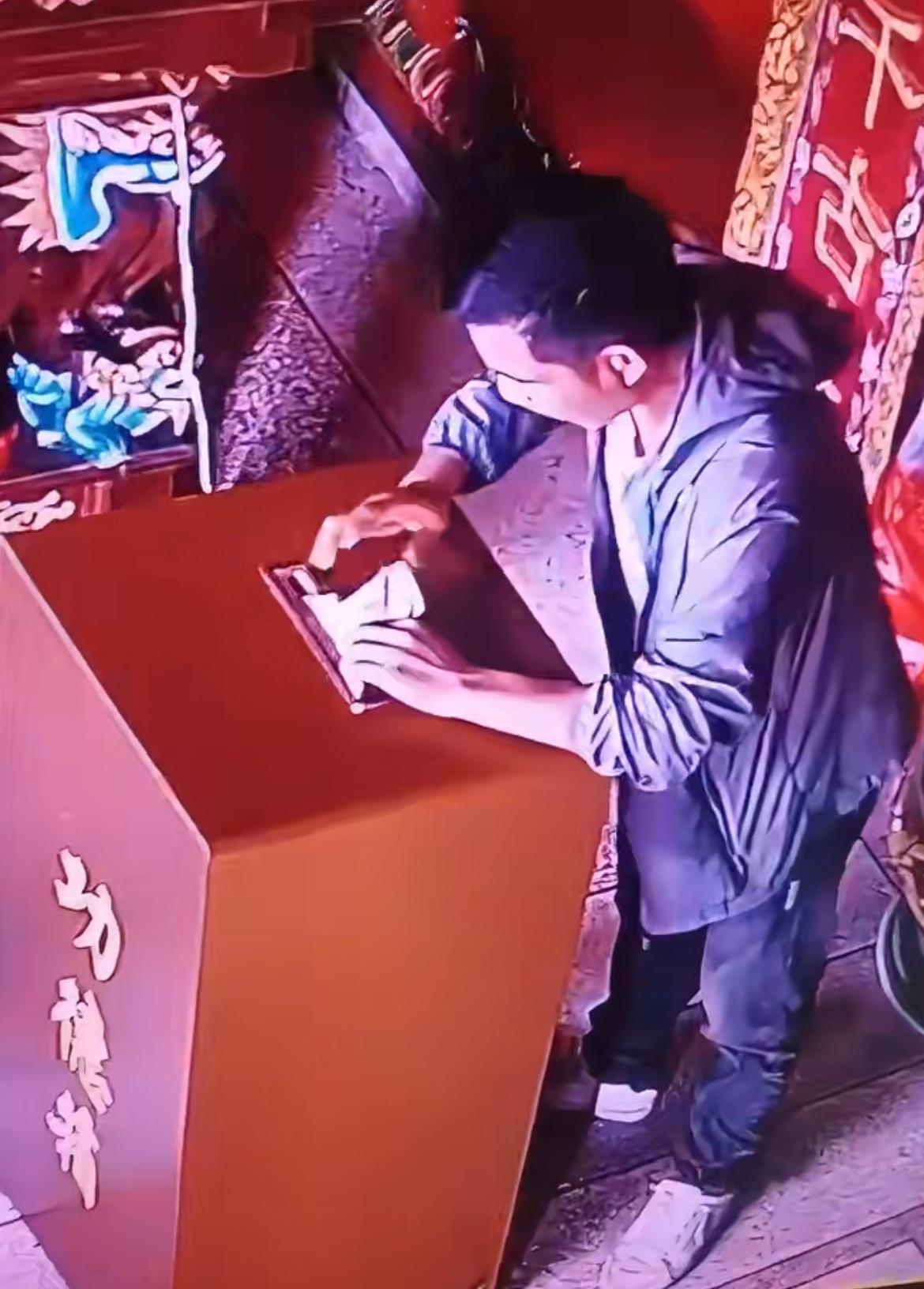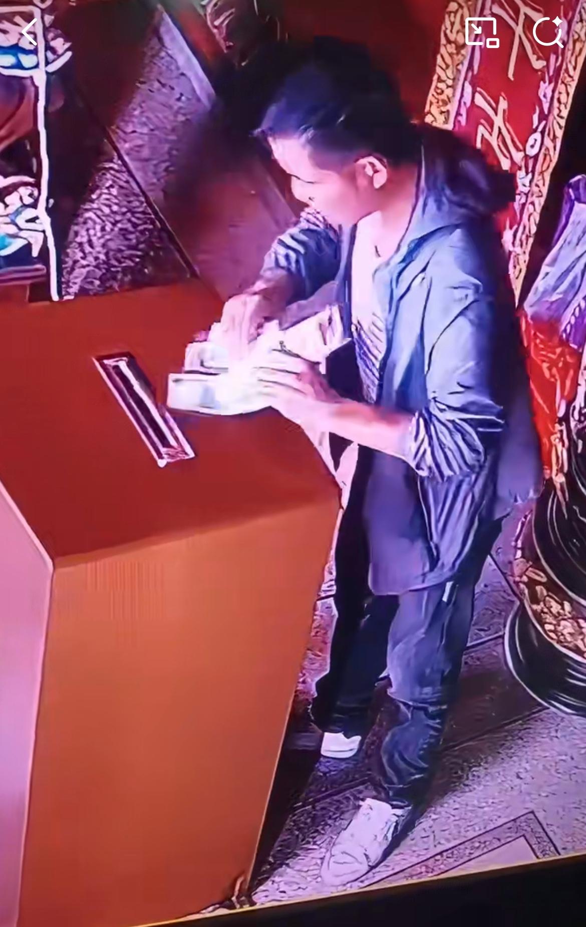 外面偷不到现金,小偷打起了庙里功德箱的主意,只见他用一个粘鼠板一头吊着绳子,另一头把粘鼠板放到功德箱里,各种红票子、绿票子就被粘到板子上,绳子提拉上来,就是一把钱,再重复上述动作,一下子就把功德箱里的钱卷干净了。小偷,佛祖就在上面看着,记得走的时候向佛祖磕个头,暂时借点钱花,将来发达了加倍奉还。小偷 金质灵猫捕鼠器 偷藏宝物 抓奖箱