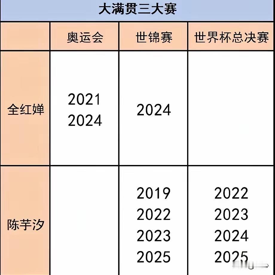 陈芋汐差一个奥运单人冠军就大满贯了!全红婵也还差一个世界杯,也实现大满贯。 通常来说,大满贯指的是奥运会,世锦赛和世界杯三大赛事,亚运会全运会不算。 天才要感谢老周,力挺你去东京奥运上场,获得金牌 婵妹16岁时就大满贯,而且还有个466.2的奥运最高得分记录 跳水这个项目,含金量最高的是奥运会冠军,其次全运会冠军,然后才是世锦赛,其它都不咋的 陈芋汐差一个奥运单人冠军就大满贯了!全红婵也还差一个世界杯,也实现大满贯。 通常来说,大满贯指的是奥运会,世锦赛和世界杯三大赛事,亚运会全运会不算。