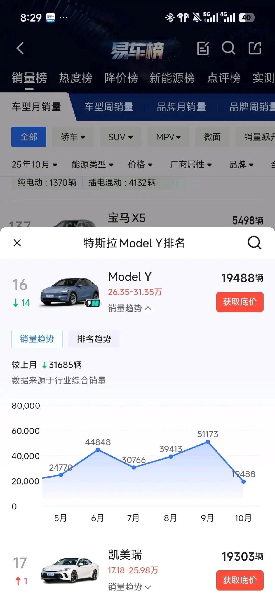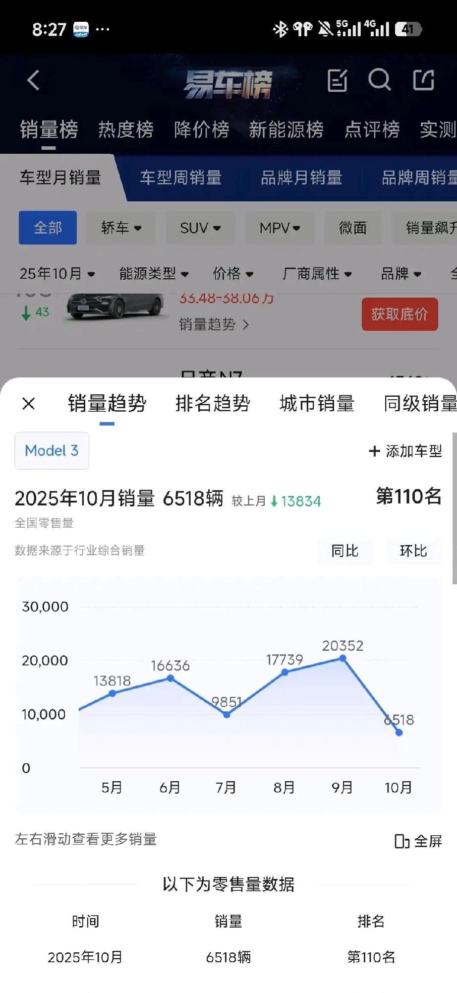 特斯拉十月份銷量暴跌,没想到啊! 比亚迪的贪吃蛇没了 小米卖的还是挺不错的 问界那边,m7m8都挺不错,m9稍微有点低了,m5有点更低了 享界那边,s9以前卖的就不咋好,这个月还要改款了,十月份卖的少正常,s9t将近五千辆,挺不错了 智界那边,r7十月份卖了将近9k,没毛病,口碑又开始回暖了 倒是s7。。。一直没起来啊,唉 尊界卖了两千,这个销量没毛病,牛逼 一直看不到小米su7ultra,不知道卖的咋样。