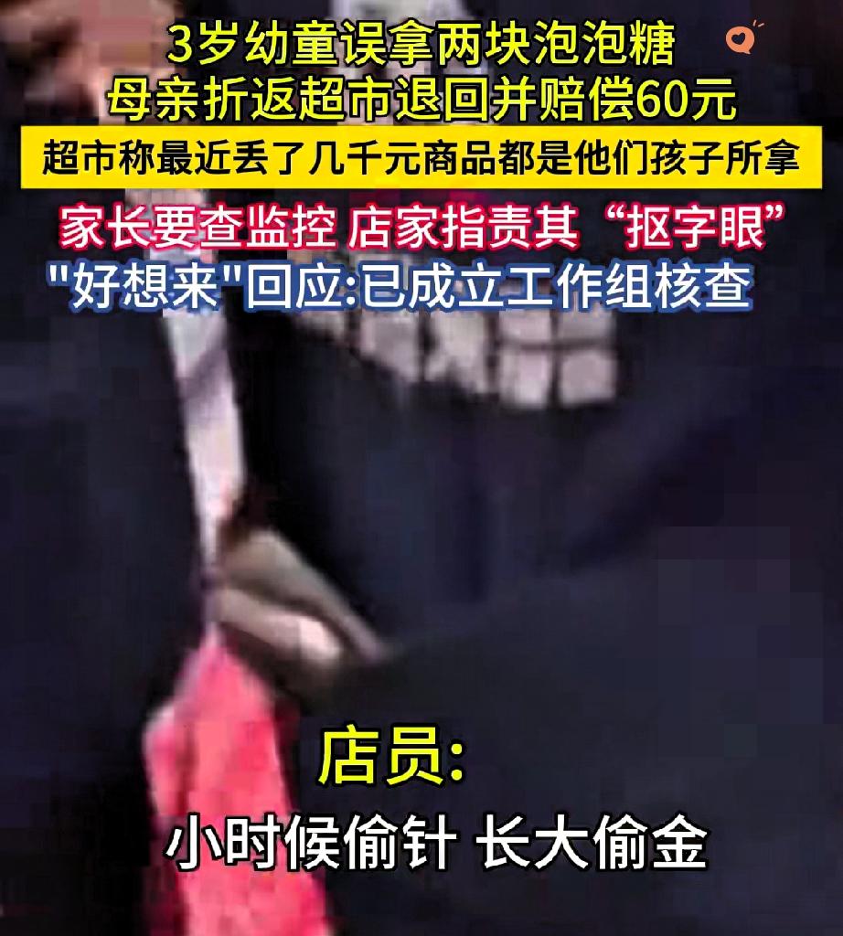 3岁娃误拿两块泡泡糖,妈妈主动折返退赔60元,这波教科书式教育本该被点赞,结果却