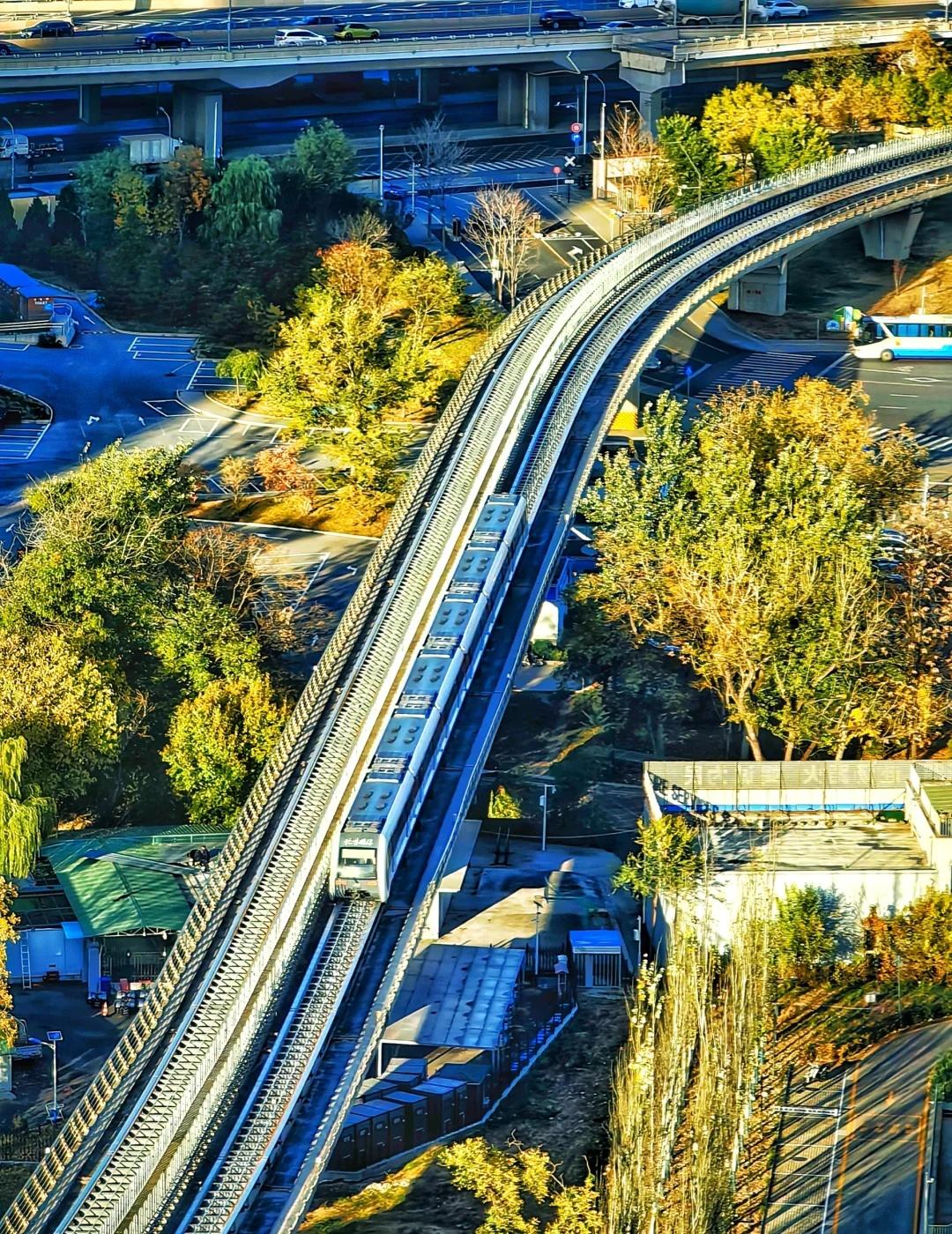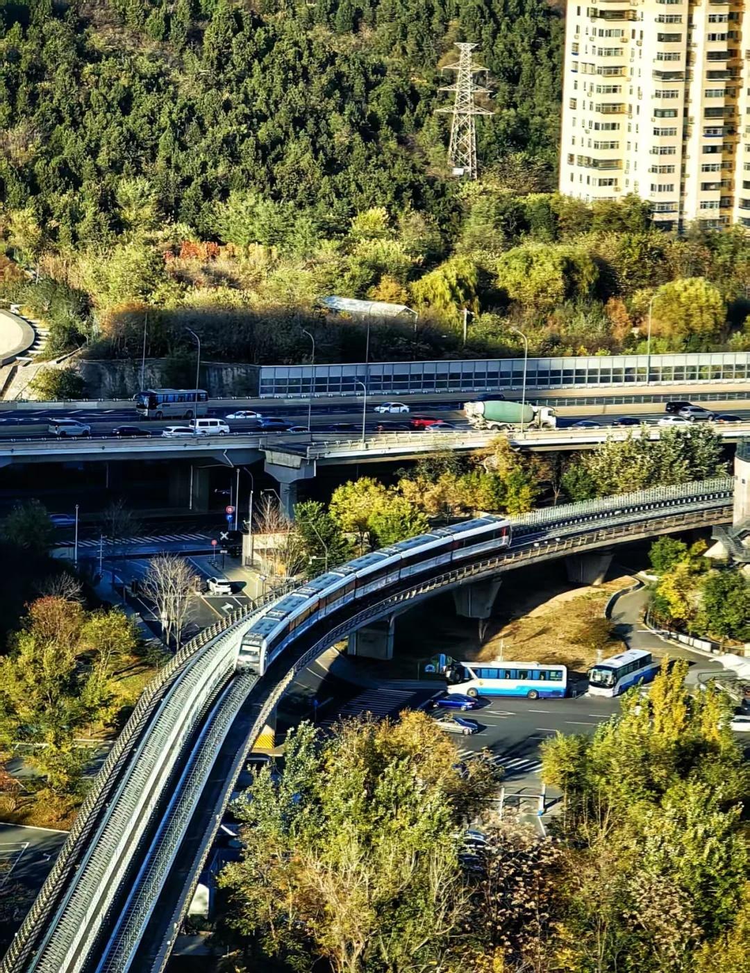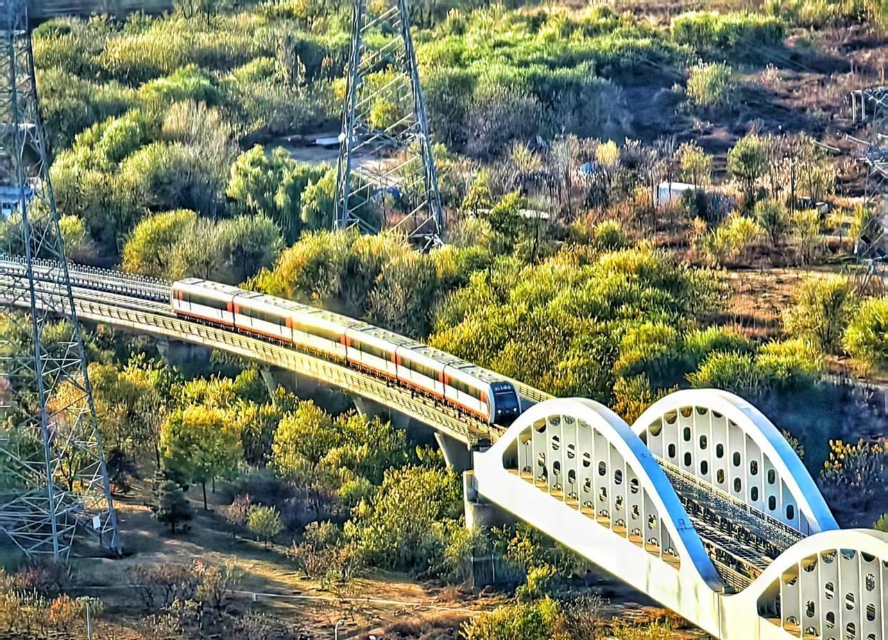 秋日余额不足,永定河上的磁悬浮列车 秋日的阳光洒在磁悬浮列车上,穿越秋色溢满的永定河畔,北京的秋日足额已不足来往秋天的列车 地铁窗外美景 轻轨 永定河 磁悬浮列车 秋日限定 首钢园打卡 北京的秋天 秋天