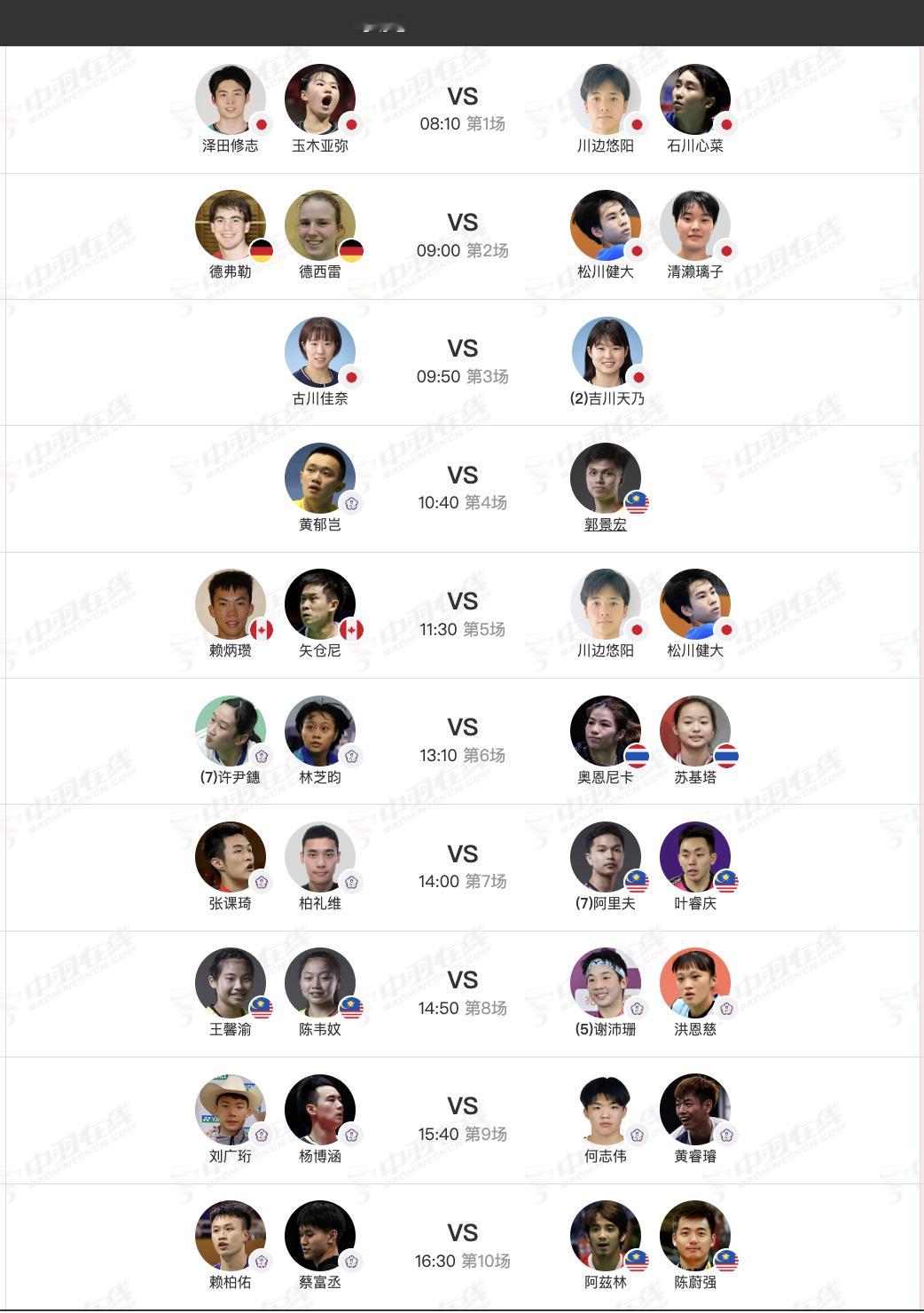 2025年熊本羽毛球大师赛11月11日资格赛加部分正赛赛程,早上8点开赛: