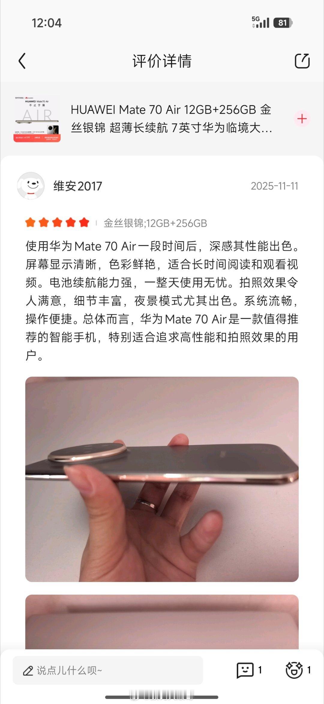 华为Mate70Air开售第一批用户上手体验来了!大家最关心的几个点:轻薄手感、旗舰屏幕、超长续航,答案都相当不错。你心动了吗? ​​​