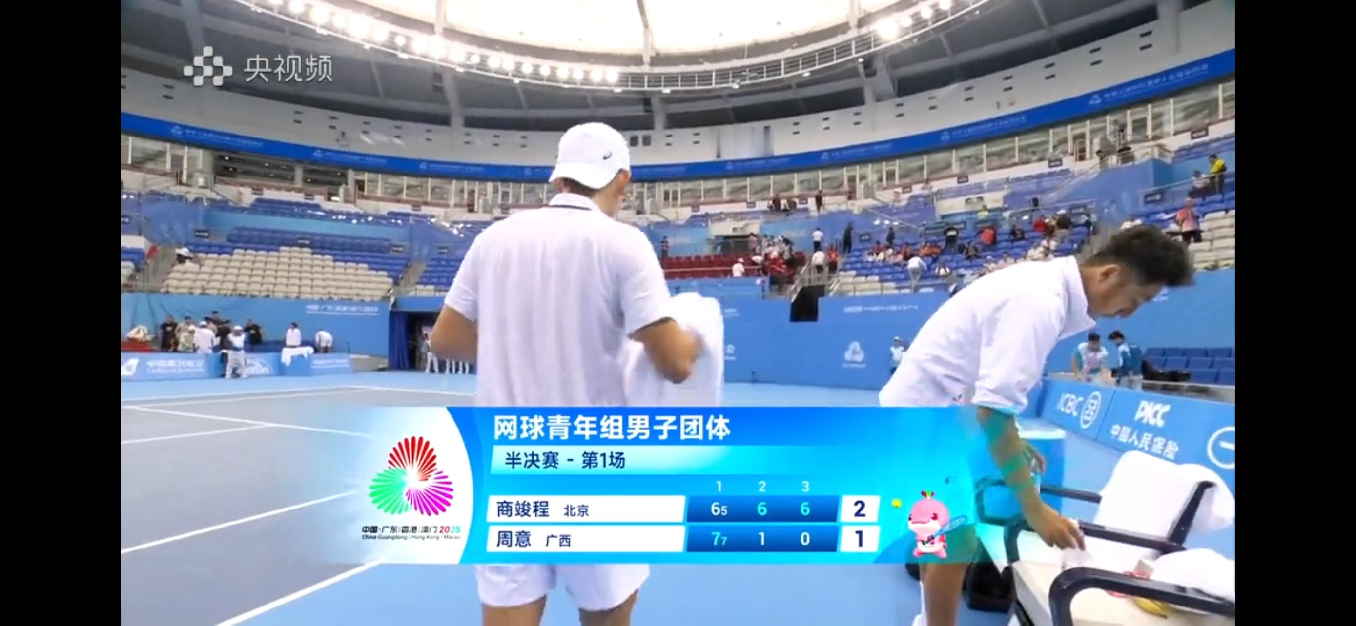 看全运会青年组男团的半决赛,北京队打广西队——商竣程vs周意。