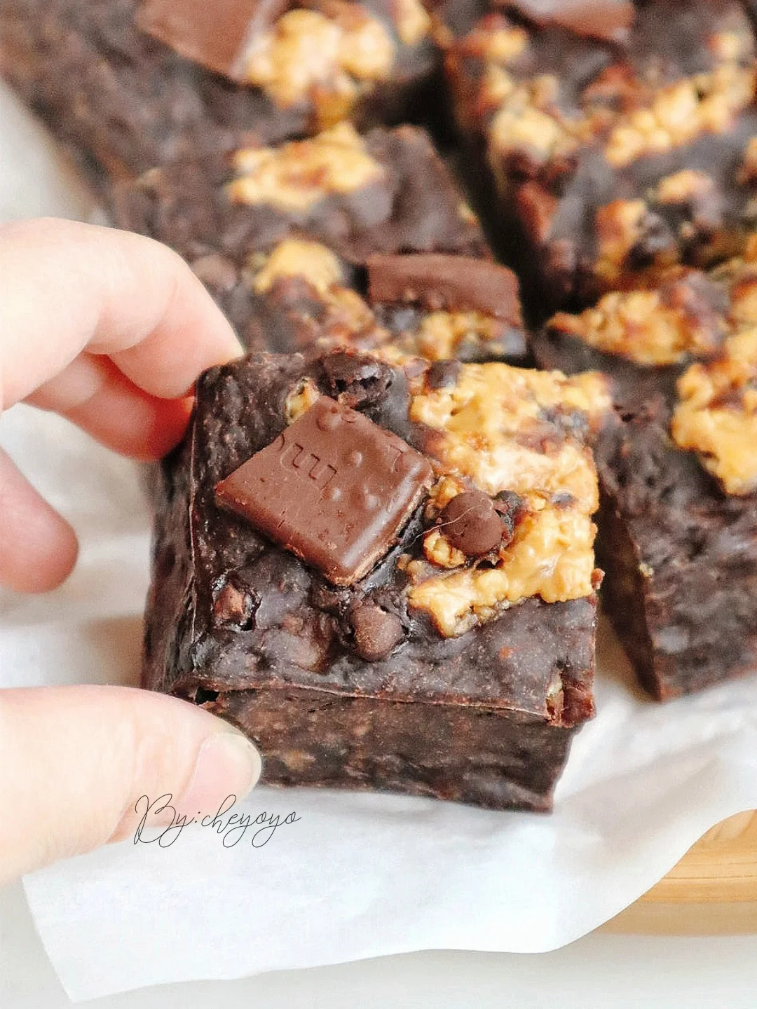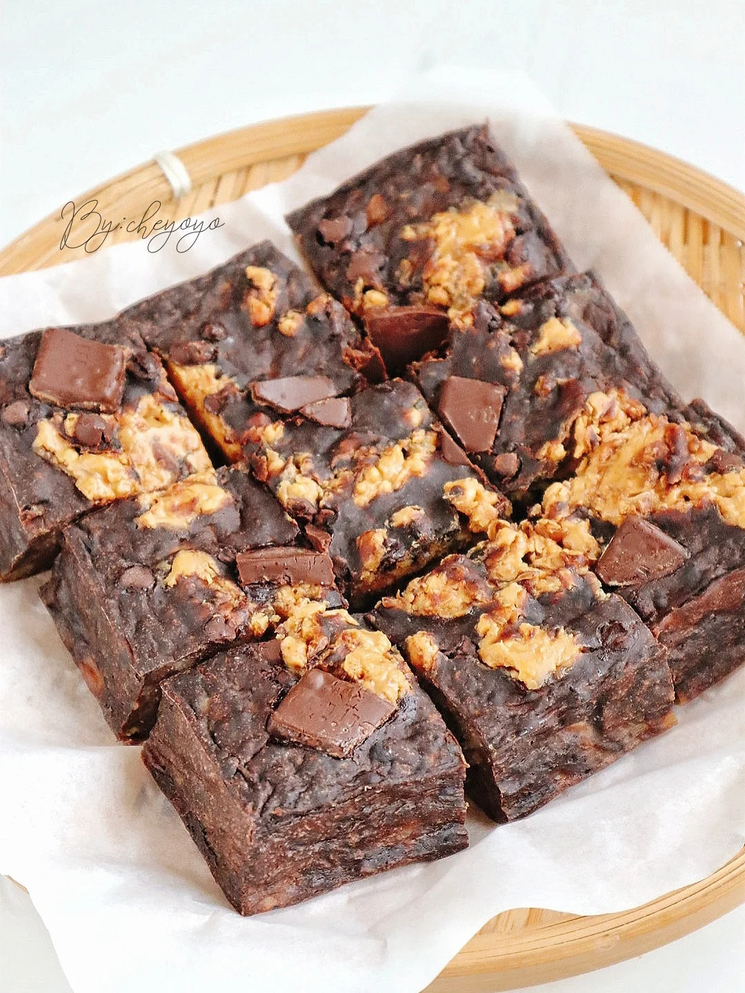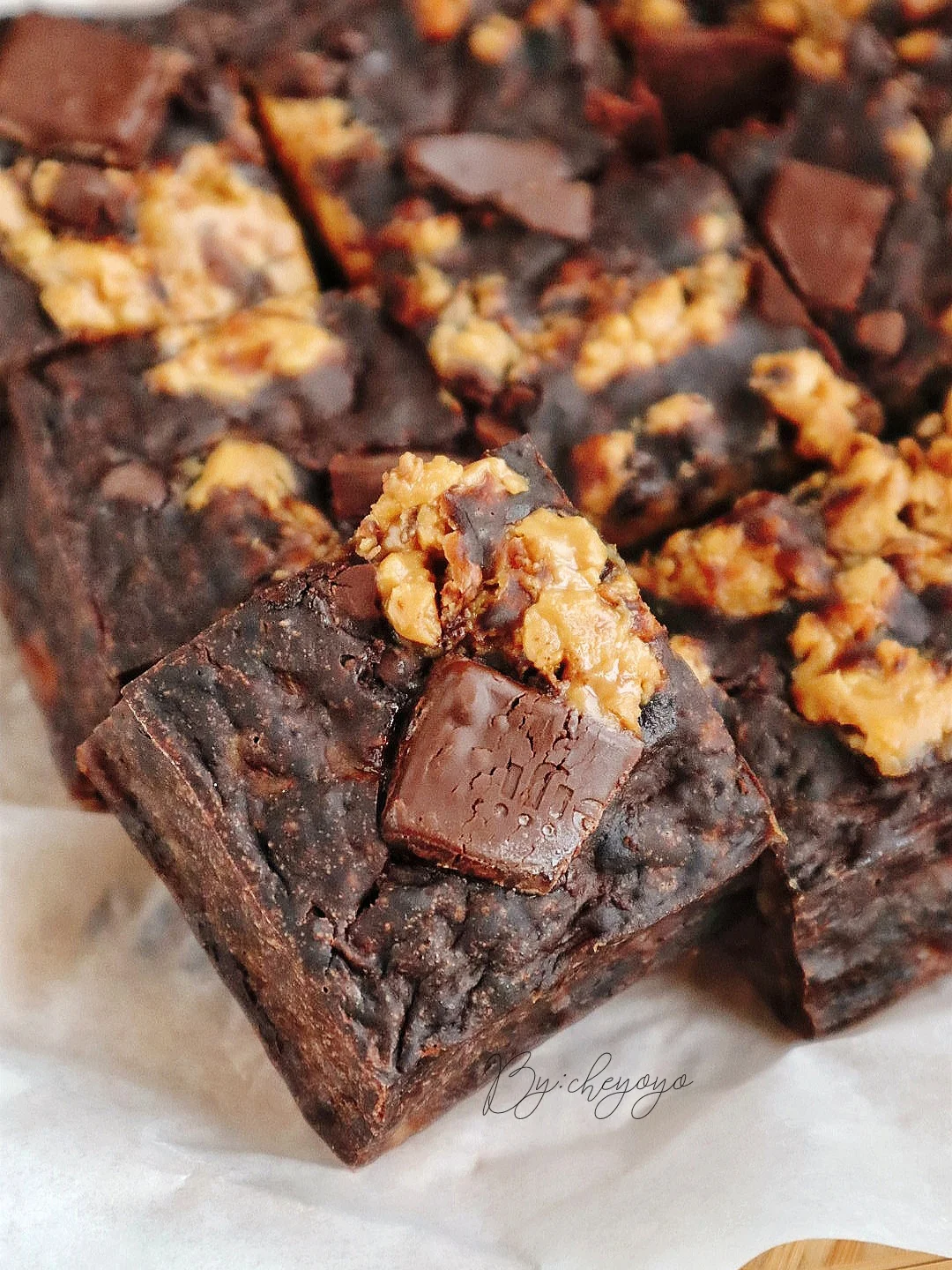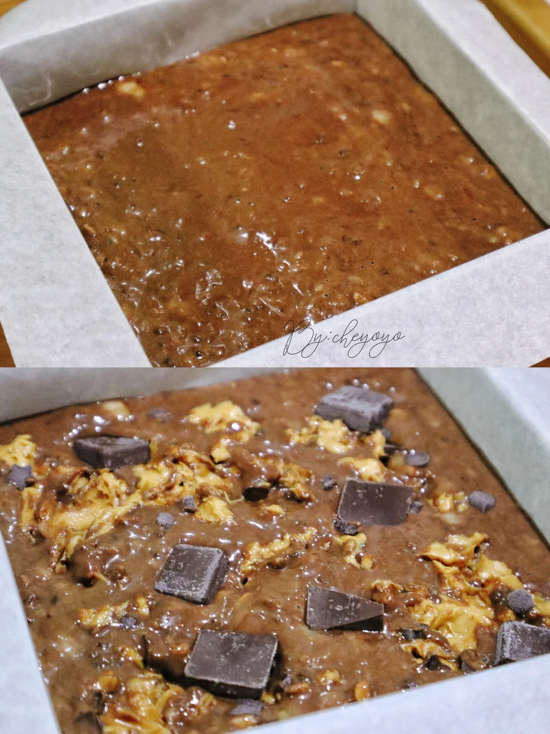 减脂期也可以放心吃的花生酱巧克力布朗尼!香蕉、巧克力、坚果、花生酱交融在一起,浓郁醇厚,层次丰富!0糖0油,低脂好吃不胖!做法超级简单,搅一搅就可以😌