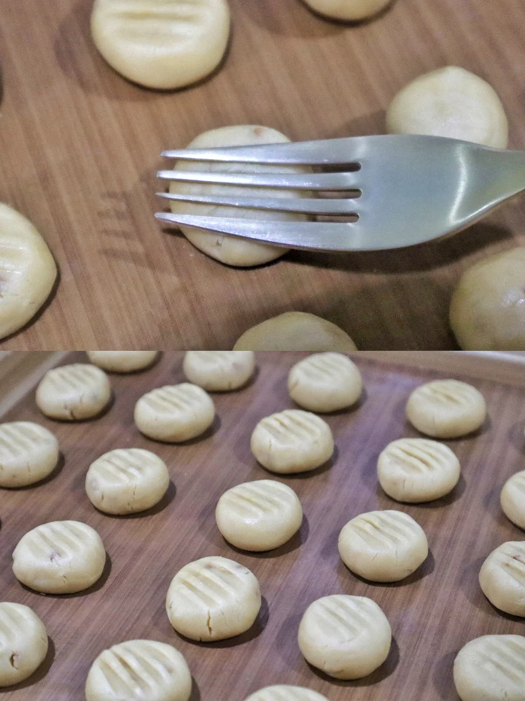3⃣️用叉子压扁,送入180度烤箱烘烤15-18分钟~😌