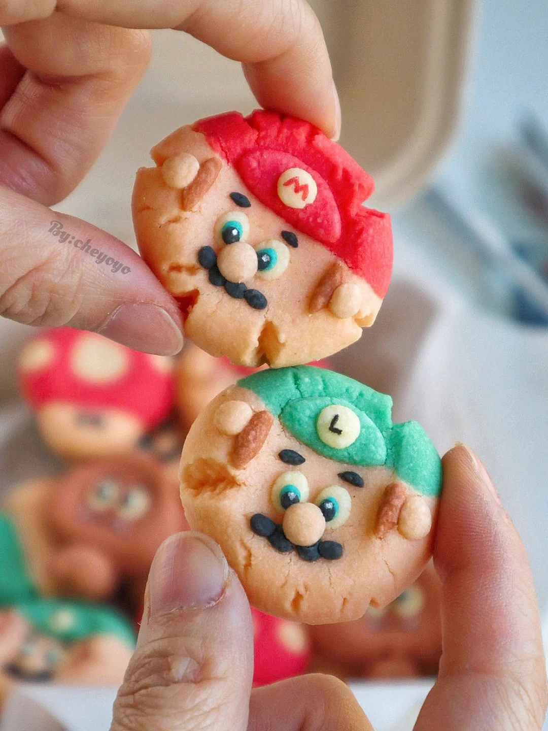 来一波童年回忆——超级玛丽玛格丽特饼干!马里奥、路易吉、毒蘑菇、蘑菇人,酥酥脆脆入口即化,造型可爱大人小孩都喜欢!不需要打发,不需要模具😍😍