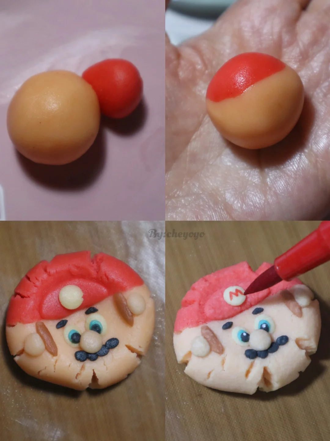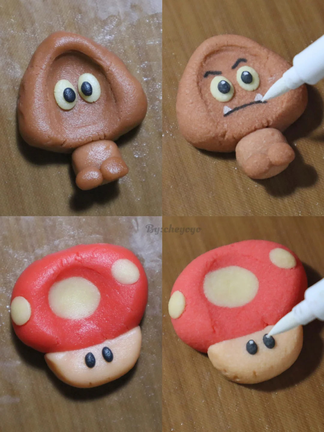 6⃣️冷却后用色素笔画上眉毛、嘴巴、牙齿、眼睛高光就ok啦🍄🍄😎