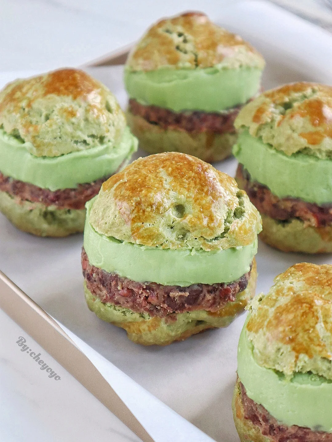 一定要试试这个抹茶红豆乳酪汉堡司康,不仅味道超级好,而且一红一绿颜值也超在线😘