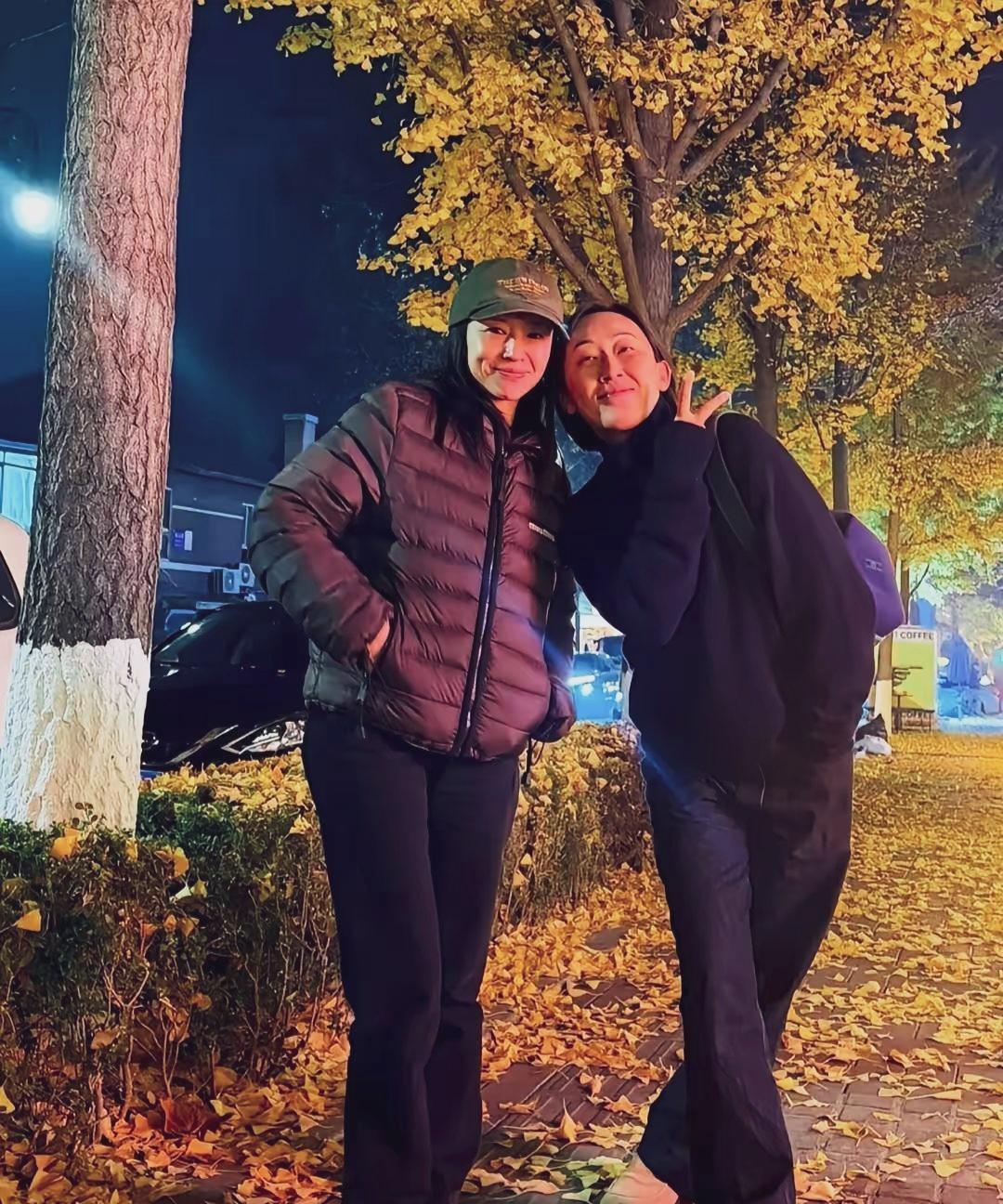 董洁现身辽宁,与好友街头散步,夜幕下她穿搭朴素,与好友开心合影留念。#董洁#