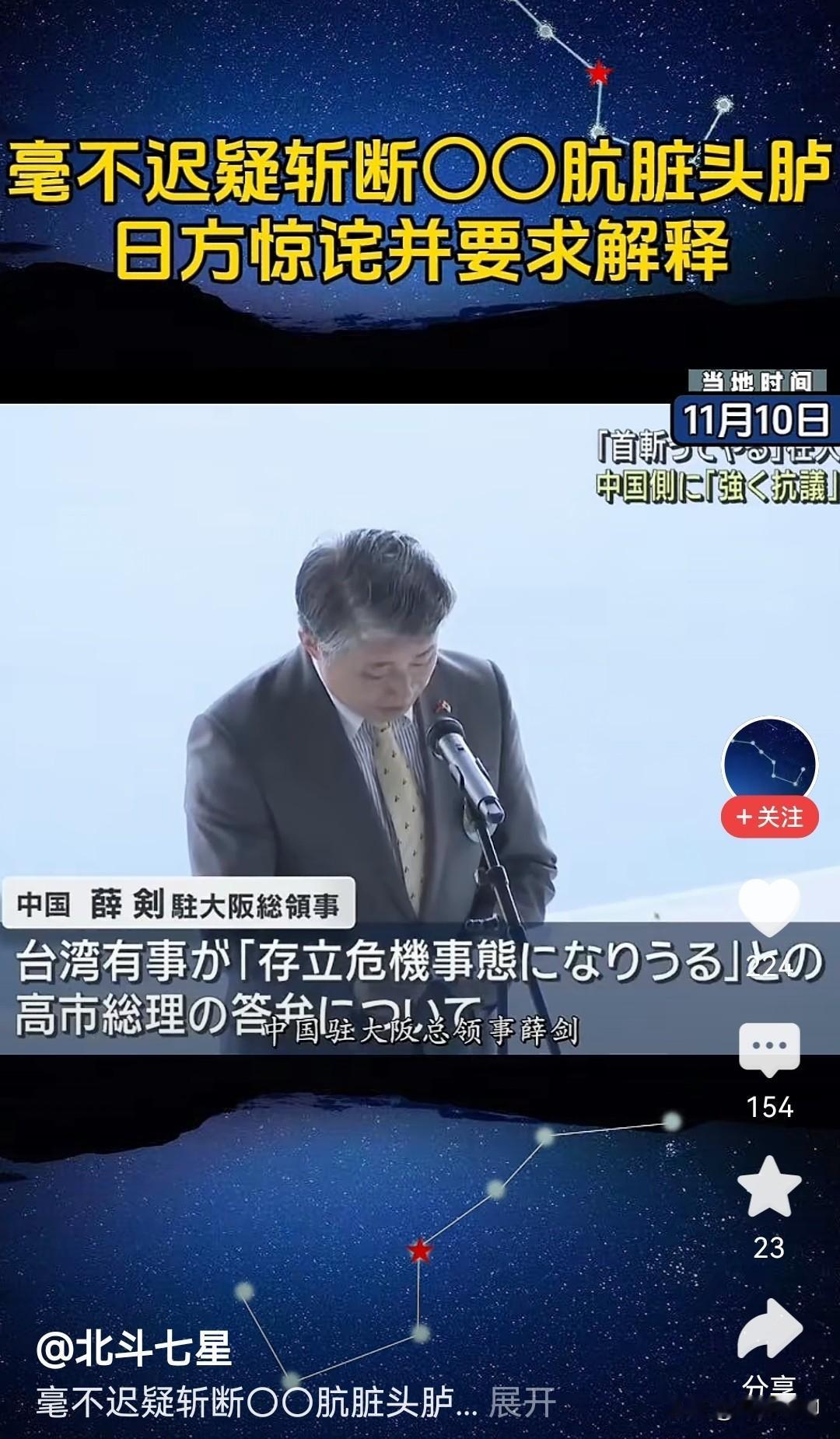 某些人是想多了吧,这次薛剑领事的直白陈述,直接让日本人破防。日方感到很诧异,还说要让咱们给出解释,你说可笑不? 要我说,我们忙得跟啥一样,哪有时间给你解释,真把自己当根葱了。其实也没啥好解释的,就是你们看到的字面意思,相信你们已经看懂了。 这次只能算个开胃菜,不要以为这就完了,这只是个开始。可能这次刺激到了某些人的敏感神经,还不太适应,不过,后面接触多了就习惯了!(图片来自网络)