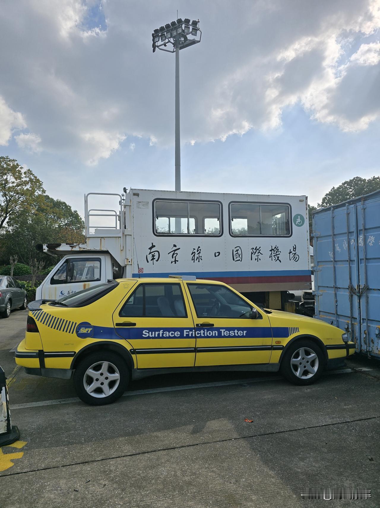 禄口机场打卡五个轮子的萨博9000cs。来自SARSYS公司的Surface Friction Tester用于机场跑道摩阻测试。研究了好半天,差点没赶上飞机[捂脸][捂脸][捂脸] 这辆车的是一家叫斯堪的纳维亚机场及道路系统公司 (SARSYS)的公司。通过在车体后部中央加装一个测试轮接触地面,在跑道道面上产生的摩擦和测试轮上的垂直负载在测试轮机械装置上施加力,然后通过电子传感系统的不断测量得到结果。机场后推车 机场轮测试 机场测试 机场y型围界 机场公路车 trk902