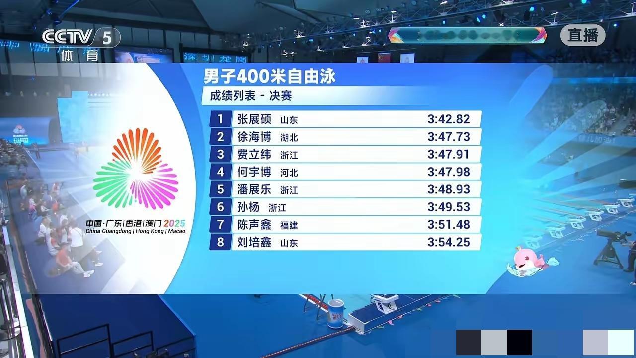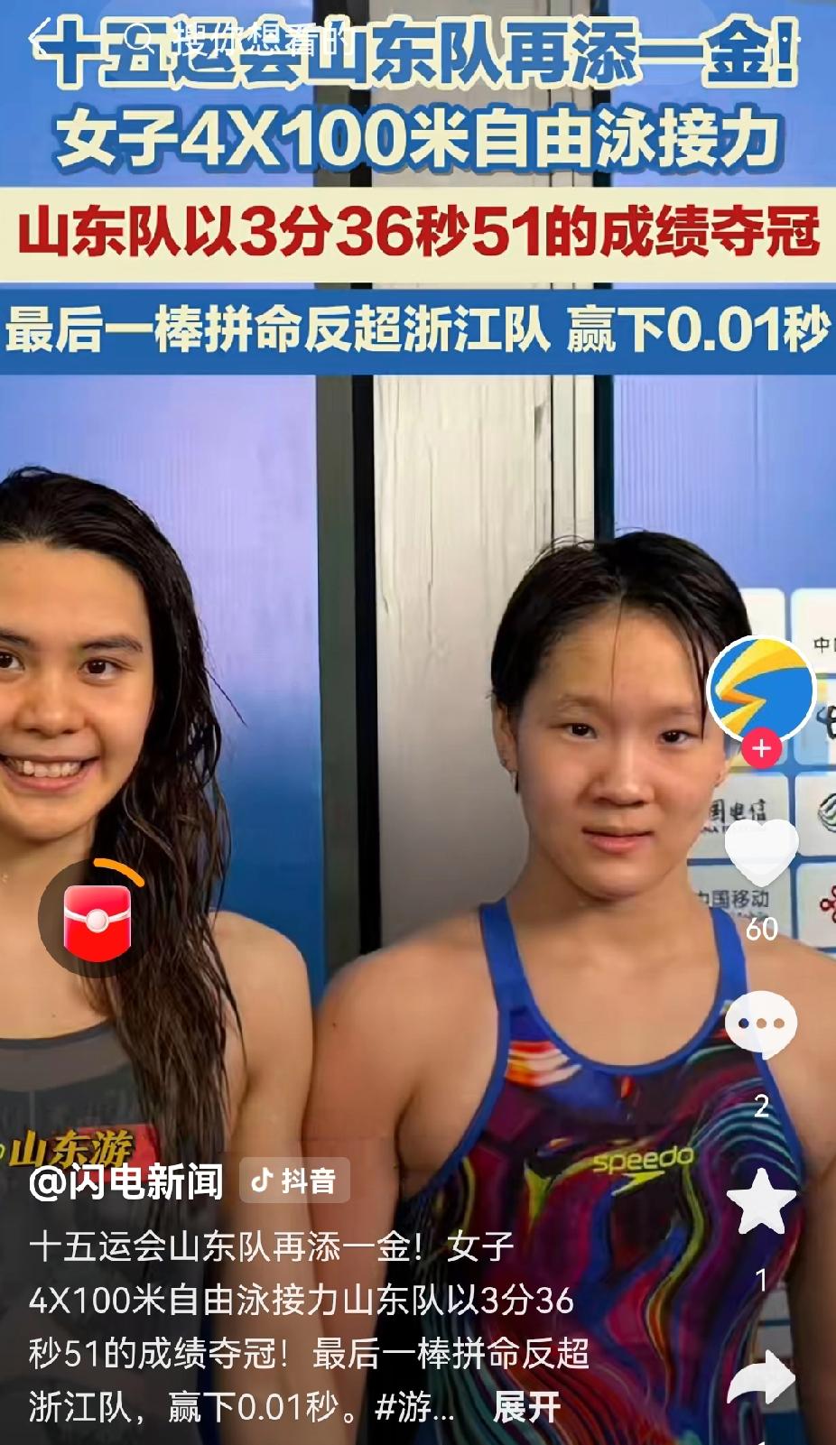 没想到山东游泳队的实力,竟然不亚于浙江队了。 众所周知,浙江游泳队非常强大,曾经诞生了像孙杨、潘展乐这样的游泳冠军。而这一次全运会,浙江队希望凭借游泳优势,让自己在金牌榜上更进一步。 然而,浙江这一计划似乎不顺利,山东游泳队竟然异常强大。 广东大湾区全运会首个游泳决赛日诞生四枚金牌,浙江拿了俩,山东也拿了俩,山东这两个全都是踏着浙江队拿到的。 男子400米自由泳决赛,八名决赛选手中有三名是浙江的,而且包括潘展乐、孙杨这样的世界冠军参加。然而,金牌却被山东队小将张展硕拿到了。 而女子游泳4*100自由泳接力赛,山东队更是在最后的25米实现了反超,以0.01的微弱优势拿到金牌。 看来这次全运会,山东游泳军团全面崛起,实力已经不亚于浙江队。而且浙江队是吸收来自全国的,但山东队基本是山东自己培养的。