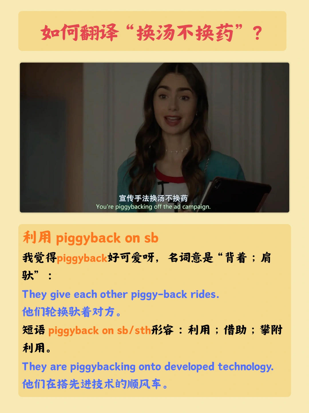 🤔 我觉得piggyback好可爱呀,名词意是“背着;肩驮”: