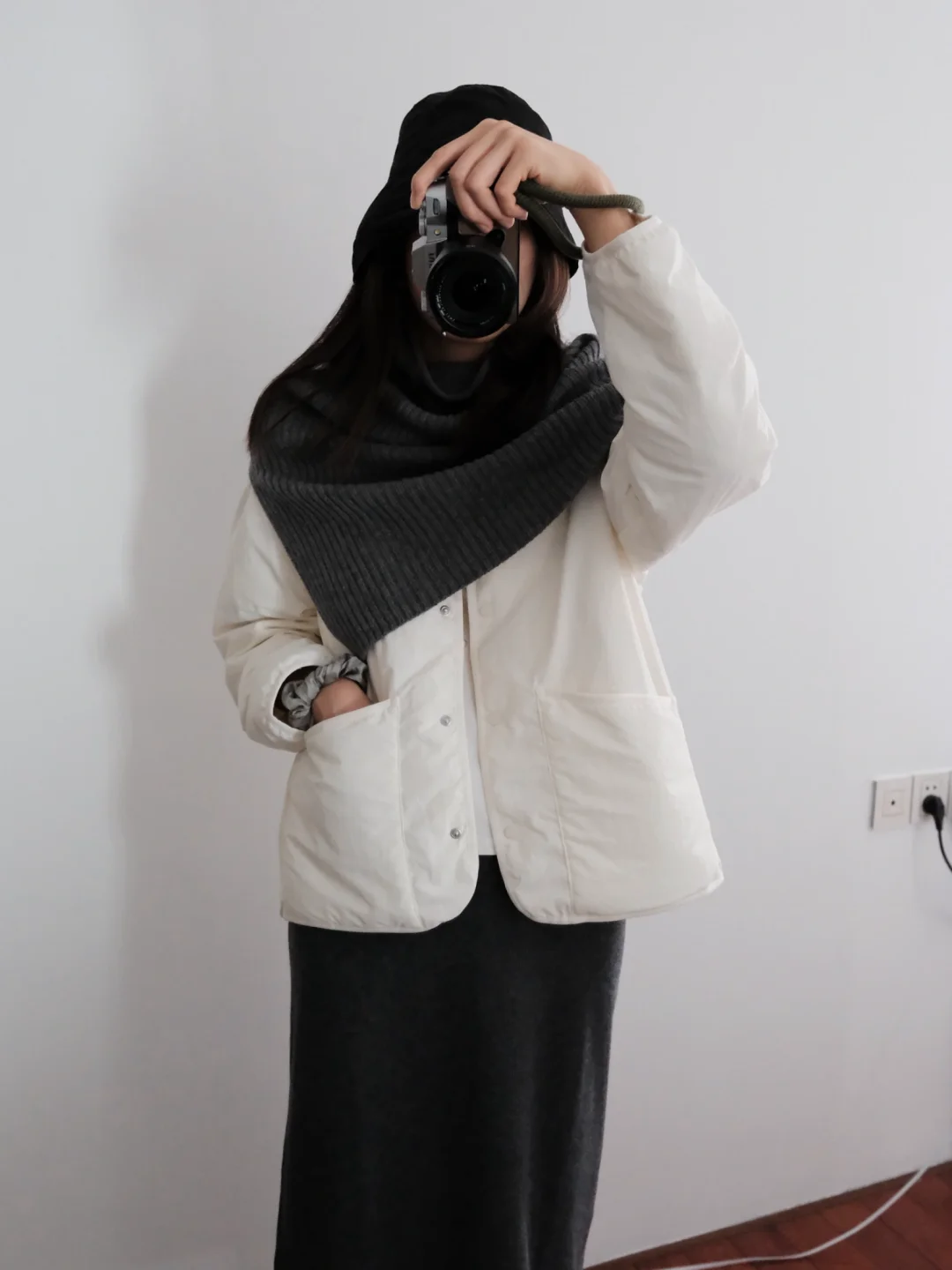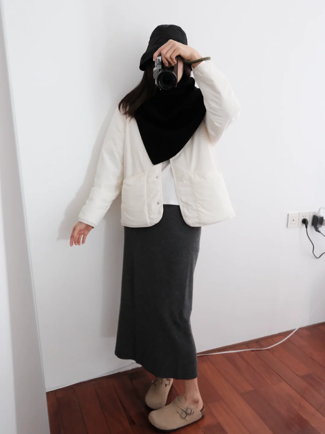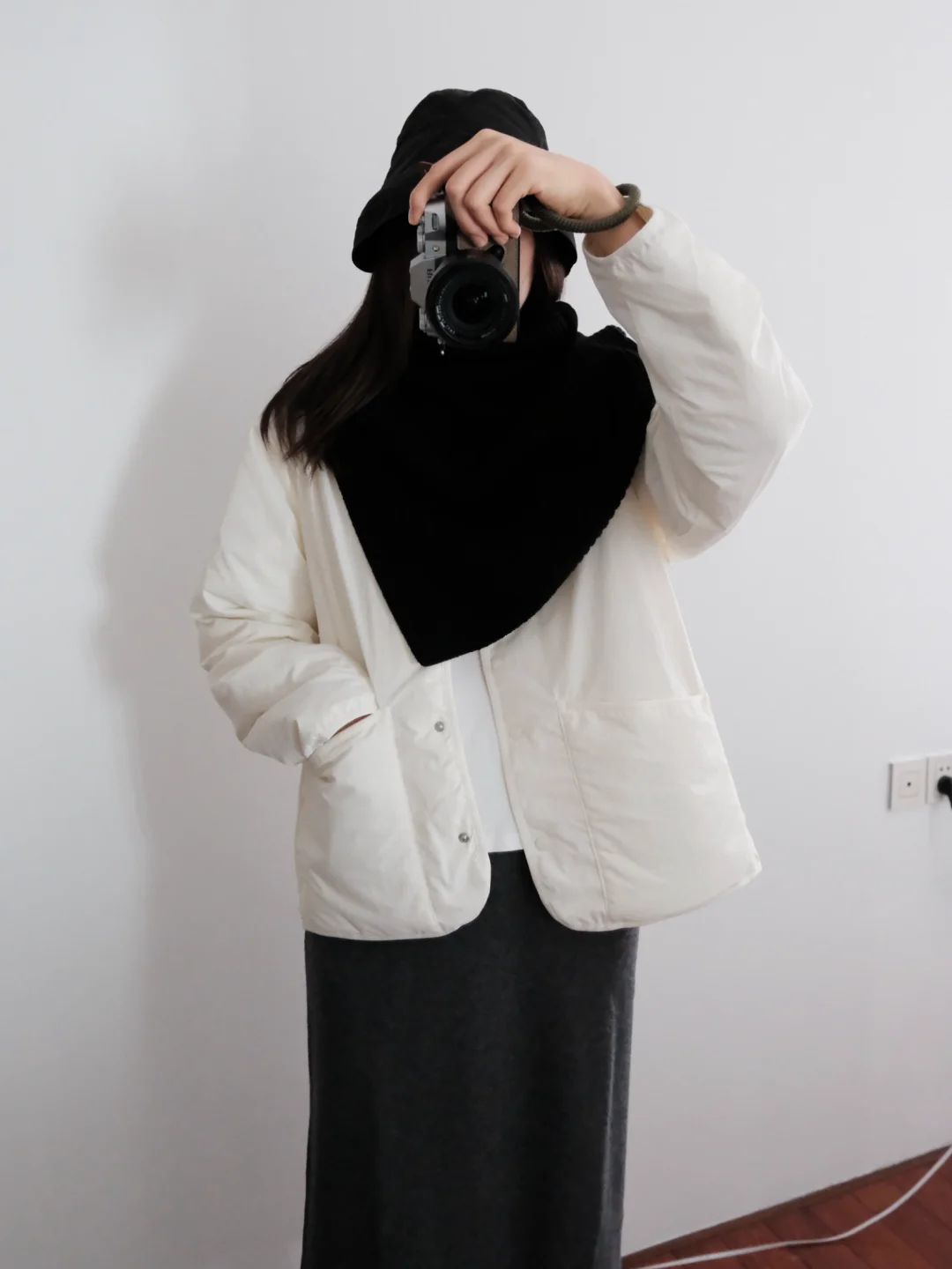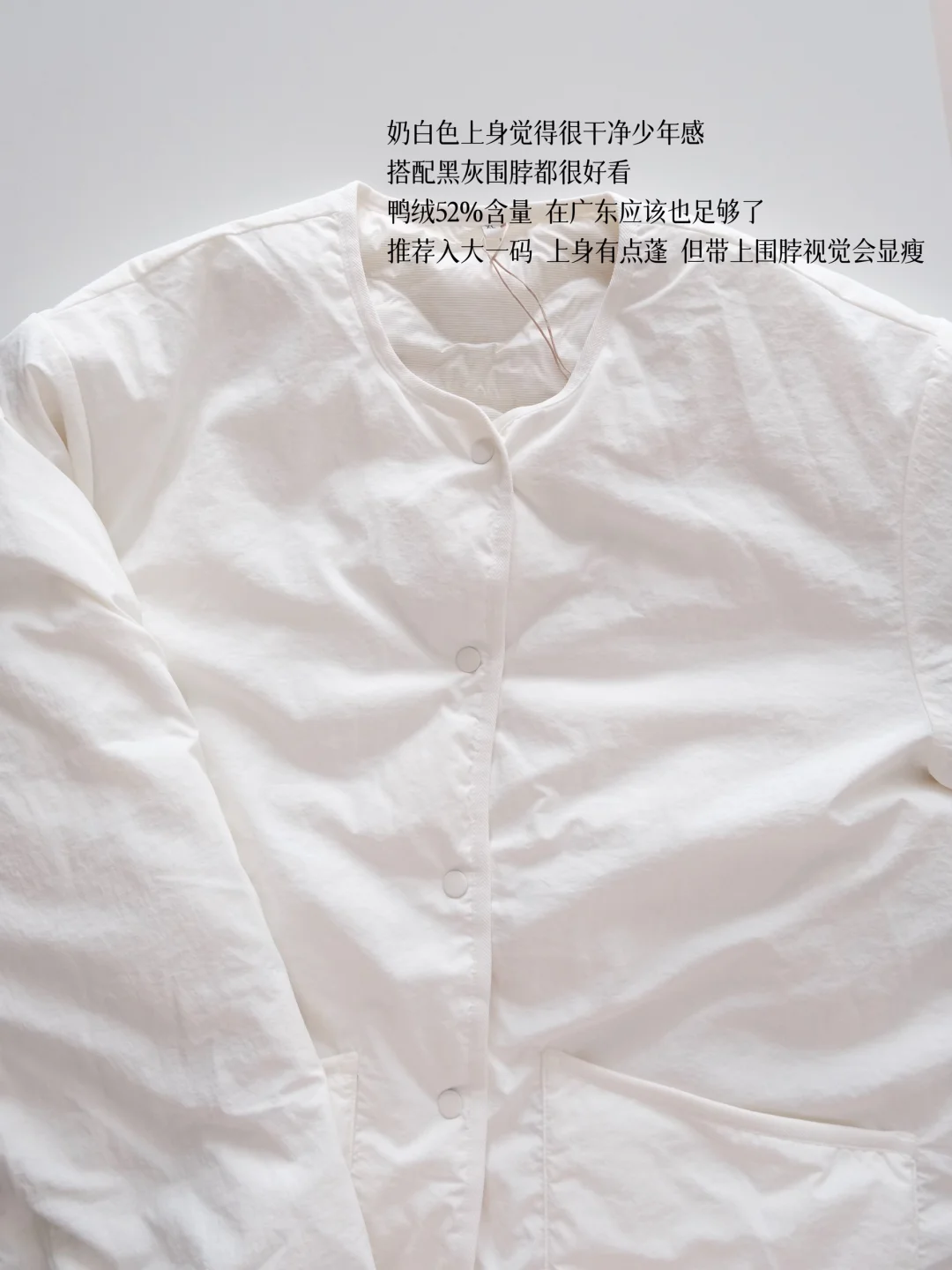 Muji白色无领羽绒服和黑灰斗篷简单舒适✨