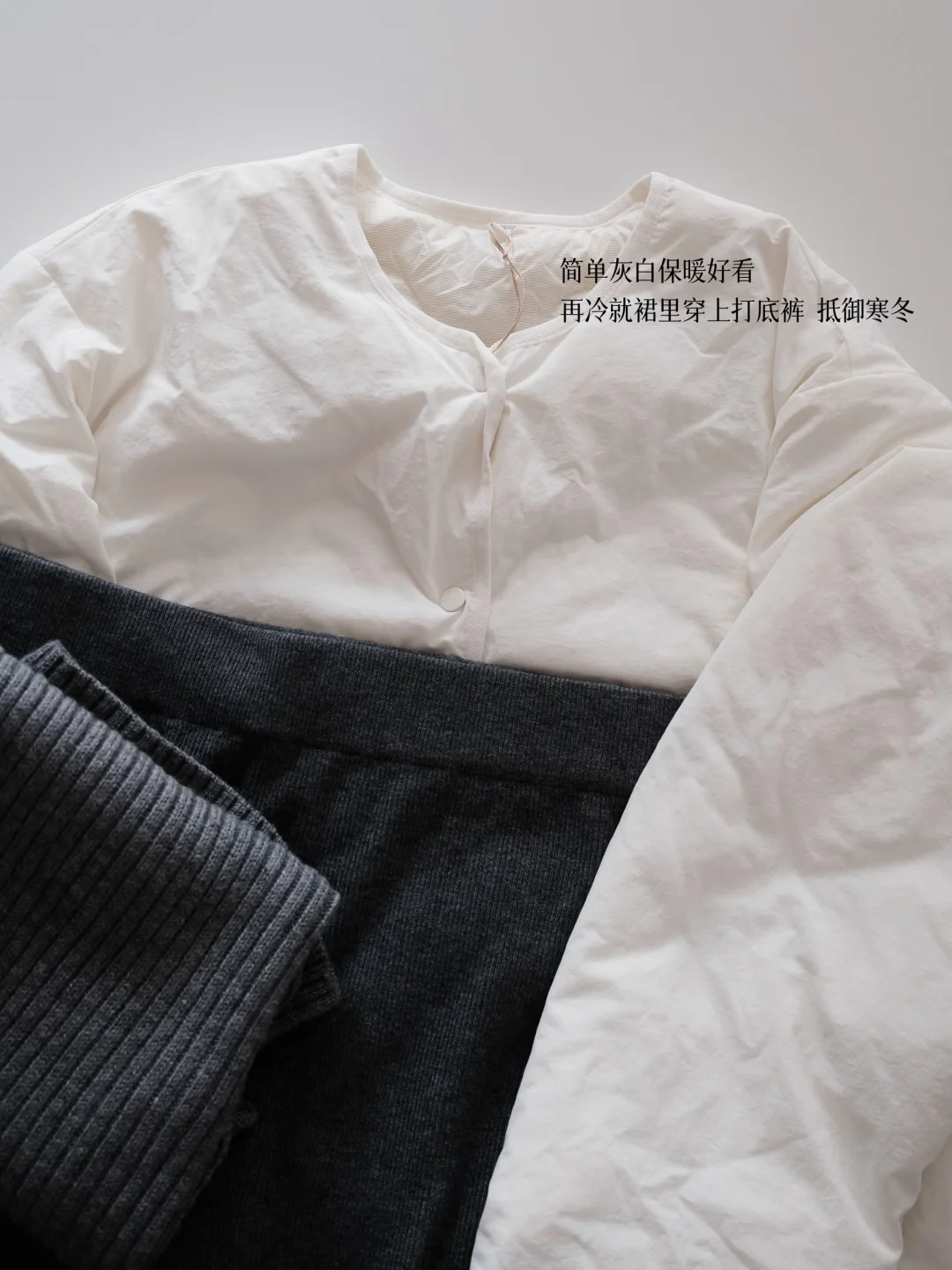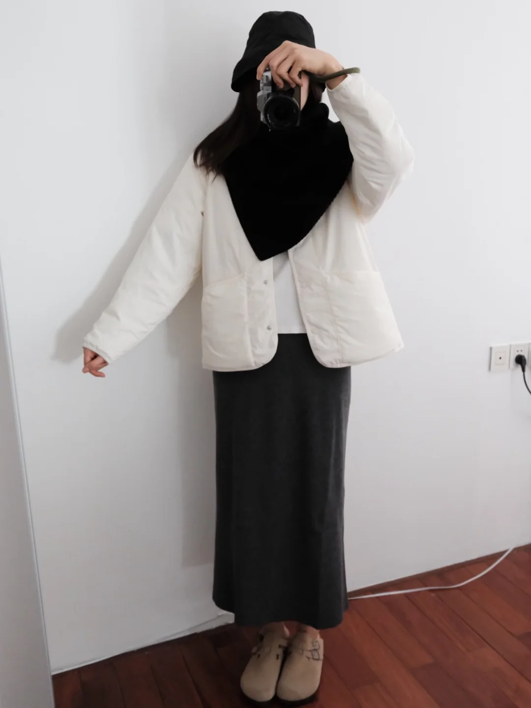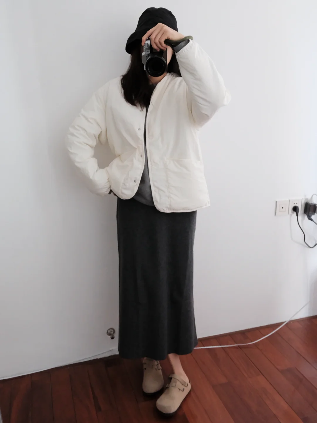 Muji白色无领羽绒服和黑灰斗篷简单舒适✨