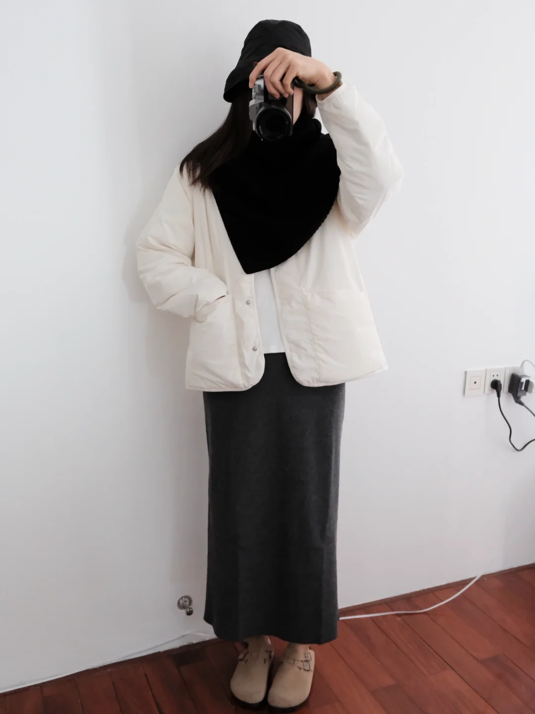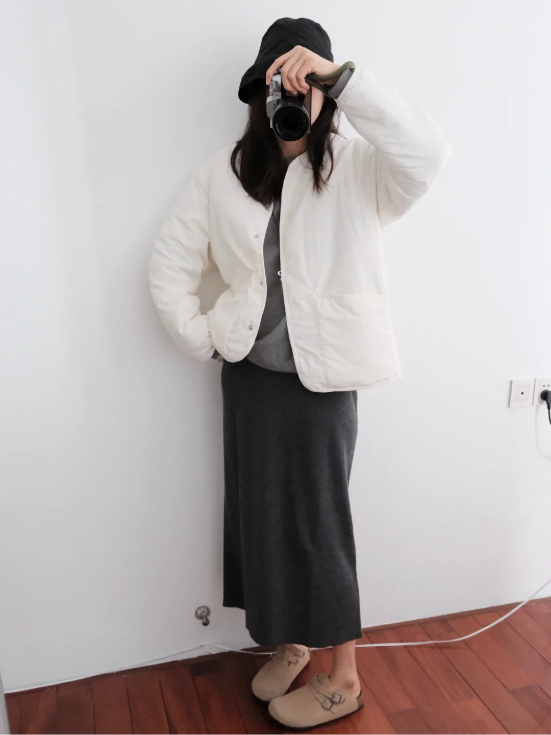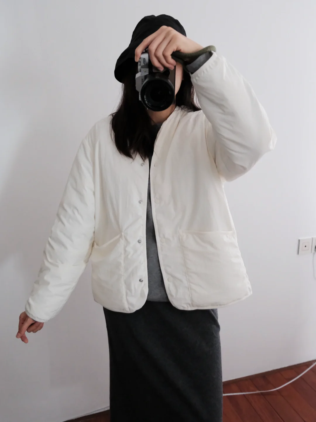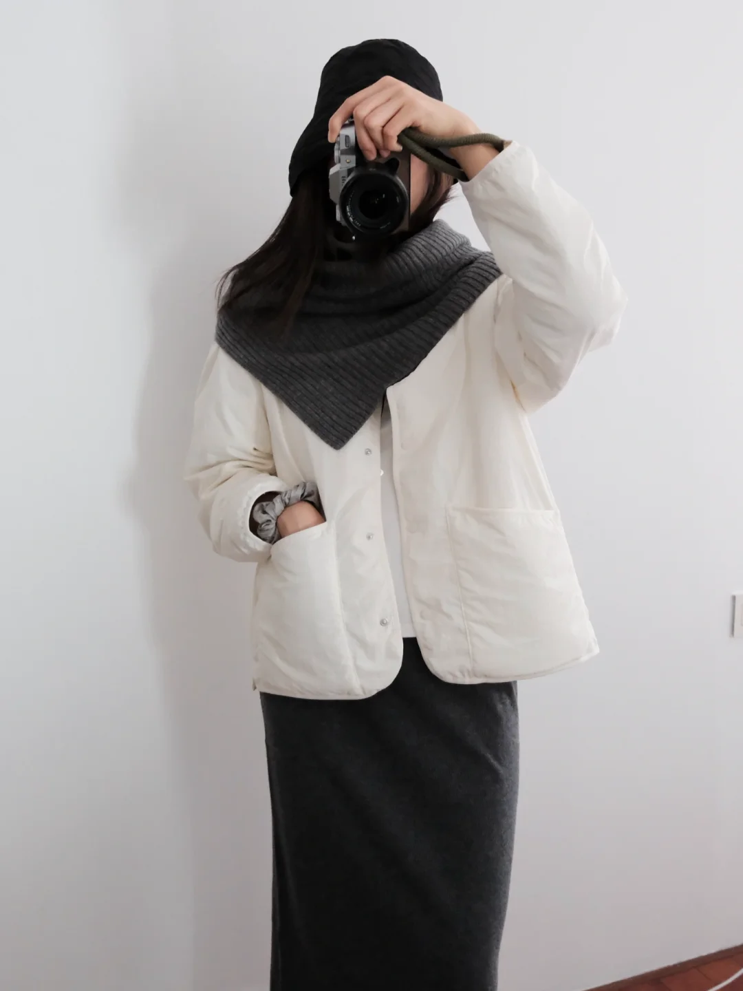 Muji白色无领羽绒服和黑灰斗篷简单舒适✨