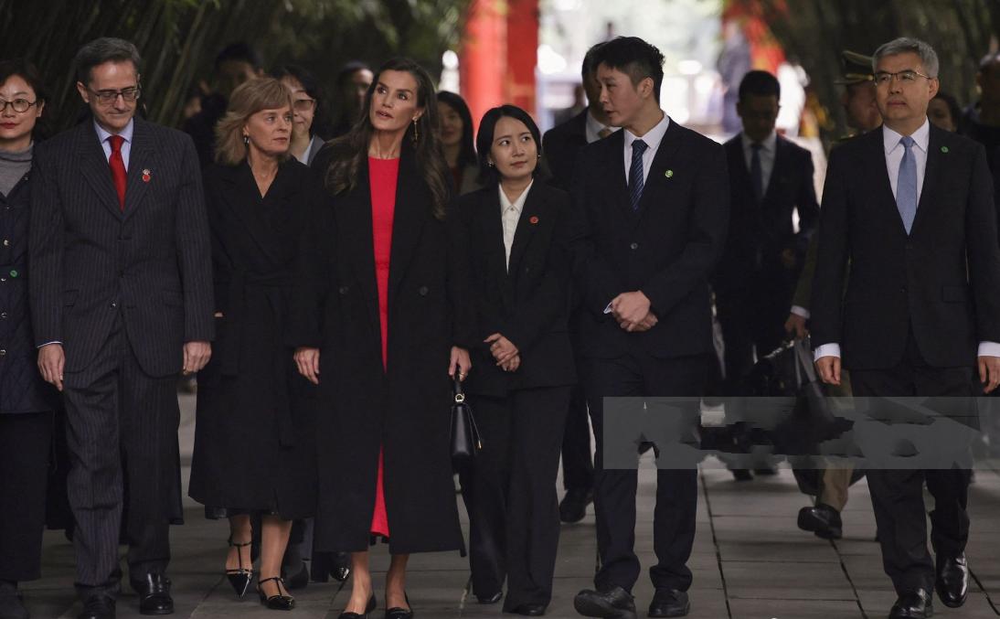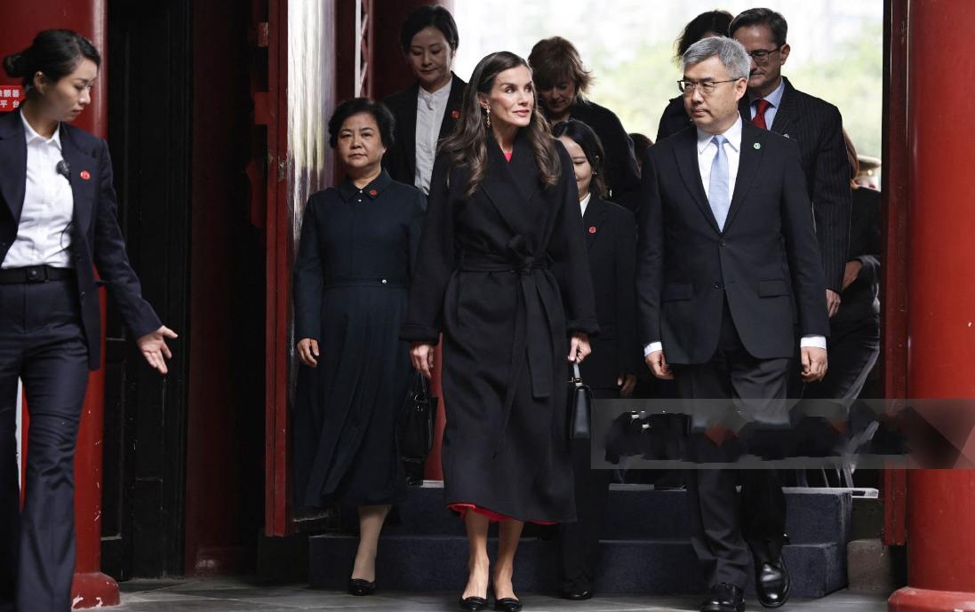 西班牙王后逛公园的高清照来啦,随行女保镖也长得美!11月11日西班牙王后打卡望江楼公园,还出席了西班牙皇家语言科学院院士安东尼奥·马查多致敬活动。 让人没想到的是王后换新衣服了,选择一身西瓜红长裙,拎着一款黑色手包,全新造型尽显皮肤白皙又淑女,还有她原本就长得漂亮,年轻时还是知名主播。 其实,王后在红裙外还穿着黑色风衣,红黑配造型走在人群中格外抢镜,过大门时女保镖被拍到,穿着职业装与白衬衫并不差,而且女保镖很有东方美。