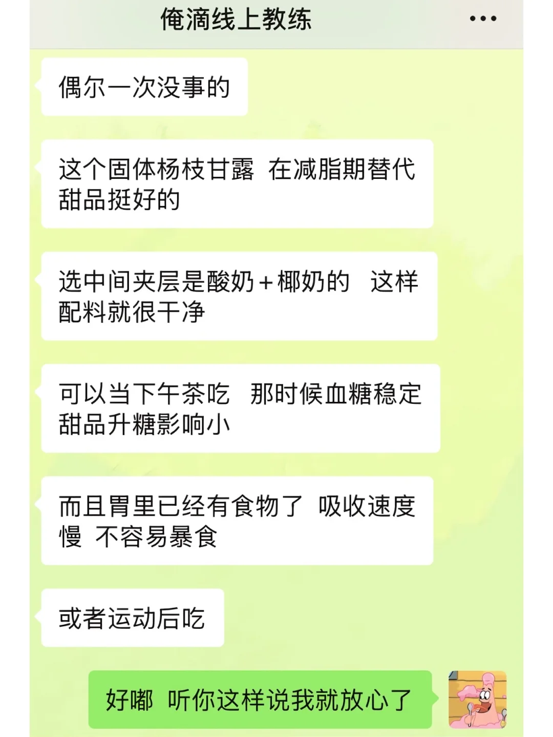 昨天周日,偷吃了很多不该吃的 没敢给线上教练姐说,今天她来找我复盘: 事情的起源是固体杨枝甘露,我最近老是刷到,很想吃,大馋丫头想要,大馋丫头得到 结果鲁莽了,空腹吃了之后就是一整个越吃越馋(听教练姐分析了之后,才知道原因) 昨天又是周末不上班,可太方便吃了,我就吃了睡睡了吃,吃了咸再吃甜再吃咸,往复循环 昨天是吃爽了,但今天的加练应该也很酸爽了 线上教练姐加练起来,毫不留情这一块 现在就是祈祷明天空腹体重,不要涨太多[皱眉R][皱眉R][皱眉R]