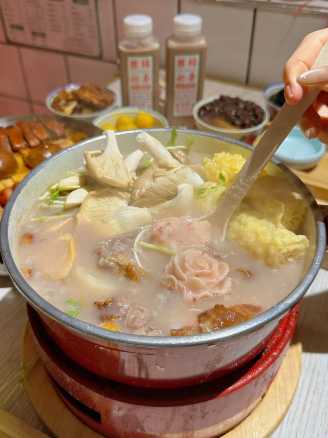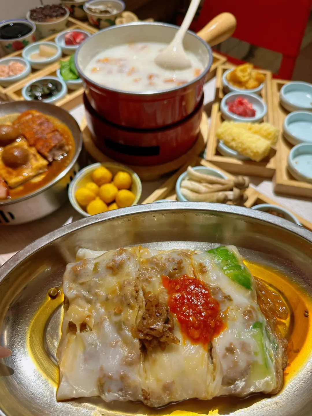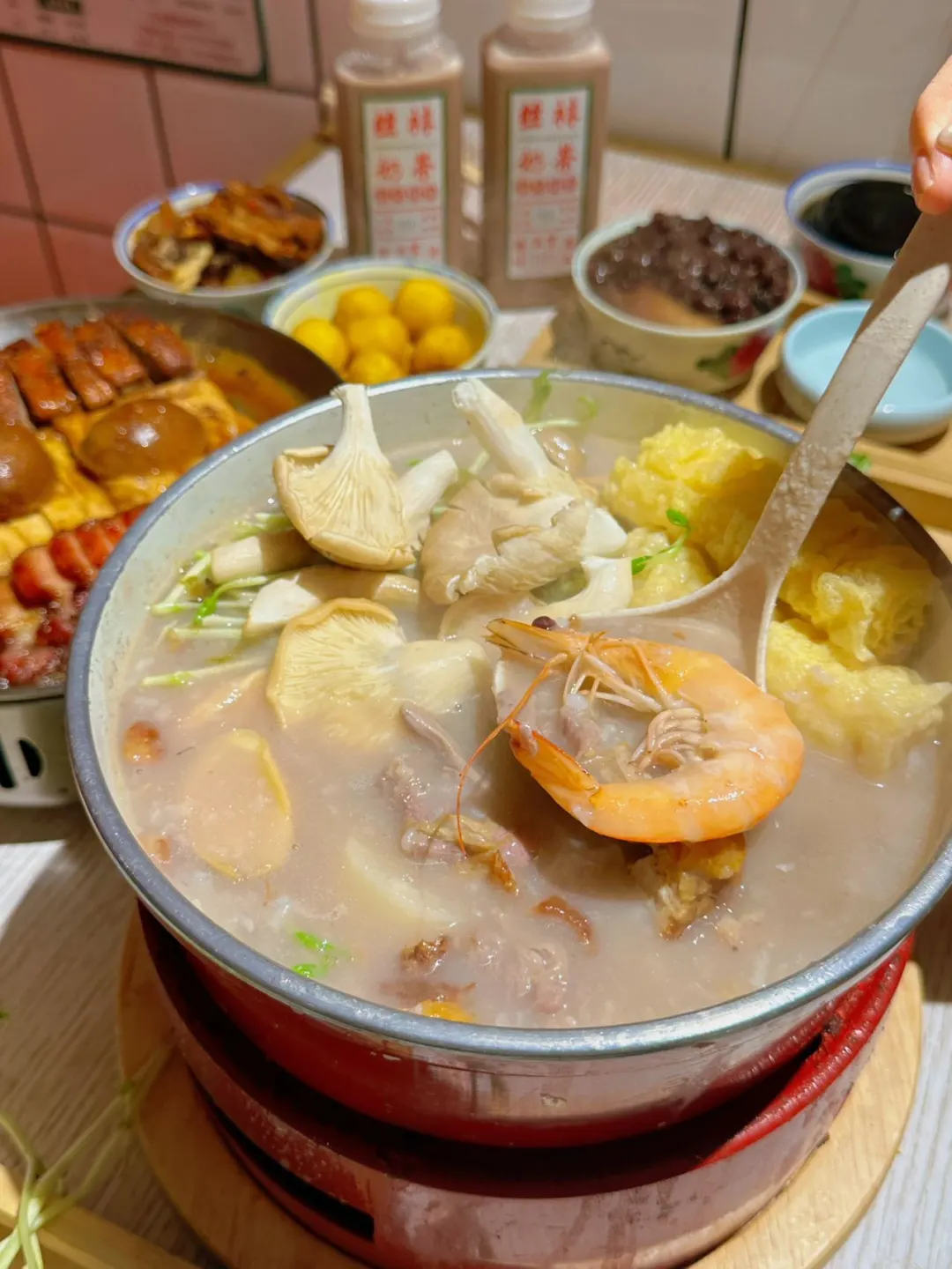 这家巷子里的广式小馆绝了。。。 感谢本地人带路🙏吃过一次就彻底沦陷!! 肠粉我每周必刷(皮薄馅足酱汁绝配🤤) 立冬必须安排他家的粥底火锅🍲 瑶柱+花胶熬足4小时!!(汤底鲜到不行~) 💰9.9的神仙单品: ✔️吊龙肉嫩到打滑 ✔️鲍鱼生蚝肥到爆汁 妥妥的性价比刺客😭 超级多广式小吃也超正:咖喱鱼蛋Q弹爆香🍢、萝卜牛杂炖得入口即化、双皮奶浓浓糯糯的。。。 人均几十r吃出广州老巷味🥺🥺 烟火气满分💯