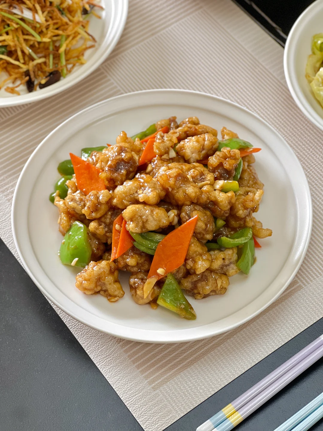 天冷了,整点东北菜好过冬[派对R]溜肉段和锅包肉都好爱,炸好肉是基础,小伙伴们可以参考一下我这个做法,成功率很高,肉外酥里嫩,裹好酱汁更香~ 【溜肉段】 【香辣土豆丝】 【酸菜汆白肉】 【炝炒圆白菜】