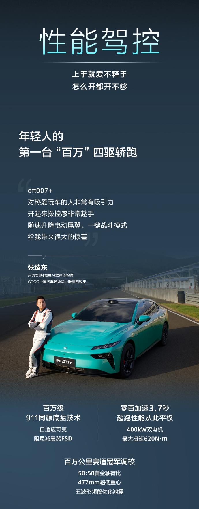 东风eπ007+上市了,分为三个配置,售价13.99-14.99万元。新增苍穹灰、港湾蓝车漆,随速升降尾翼、电动掀背尾门,再配上19英寸轮毂,颜值这块儿挺抗打的。 全系标配激光雷达,以及20余项驾驶辅助功能,支持高速NOA、全场景智慧泊车等高阶功能。 高通骁龙SA8295P芯片,支持百度文心一言+DeepSeek双AI大模型智能语音助手 超感增程2.0系统,纯电续航308公里,综合续航1308公里,支持4C超快充。【来自懂车帝车友圈】