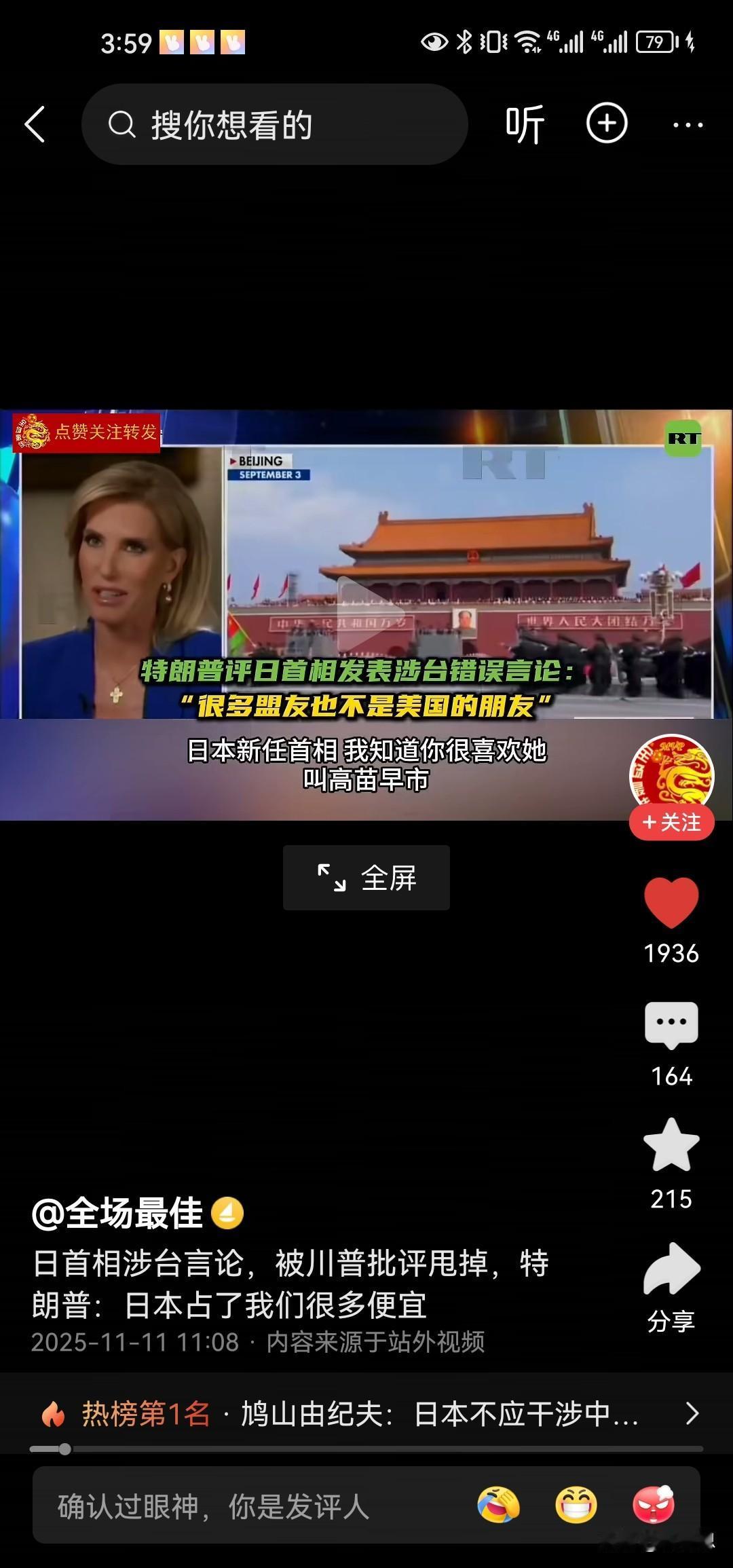 美国记者想给特朗普挖坑,女记者说日本首相高苗早市是你的朋友最近说了台海危机事关日本的生死存亡,你怎么评论?特朗普好精,他避开了直接回答,他说美国有很多盟友,但并不都是美国的朋友,很多盟友占美国的便宜比中国更严重,言下之意。这些盟友坏得很,只会占美国的便宜。特朗普的意思很明显,你别给我挖坑,我还想明年4月顺利访华[捂脸][捂脸][捂脸]