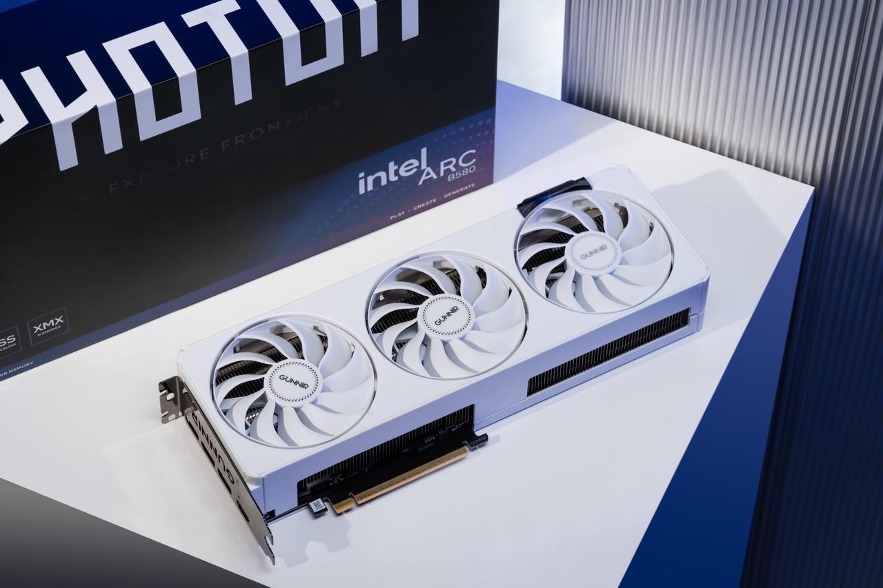 光之战斗法师 蓝戟B580 Photon 12G OC显卡来了 纯白斑点纹理设计+多功能LOGO指示灯面板,视觉质感出色 附送金属磁吸徽章 信仰感满满 3×幽刃风扇,散热更强、噪声更低 全新Xe2架构,TSMC N5工艺制程 XeSS2技术加持,通过AI算法插帧,游戏流畅度大幅提升 12GB超大显存,内置视频编解码器 视频渲染效率MAX,游戏、生产力一手抓