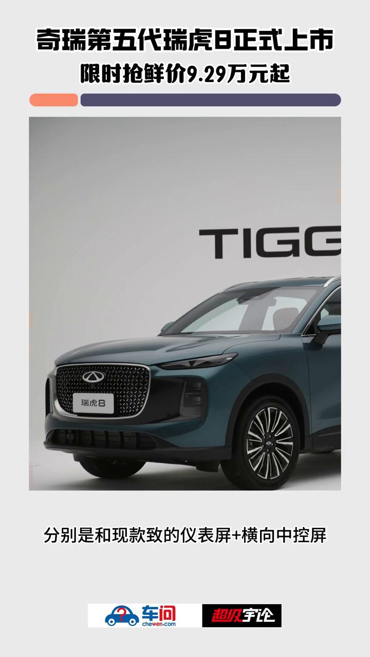 奇瑞第五代瑞虎8正式上市,限时抢鲜价9.29万元起。 11月10日,奇瑞宣布旗下