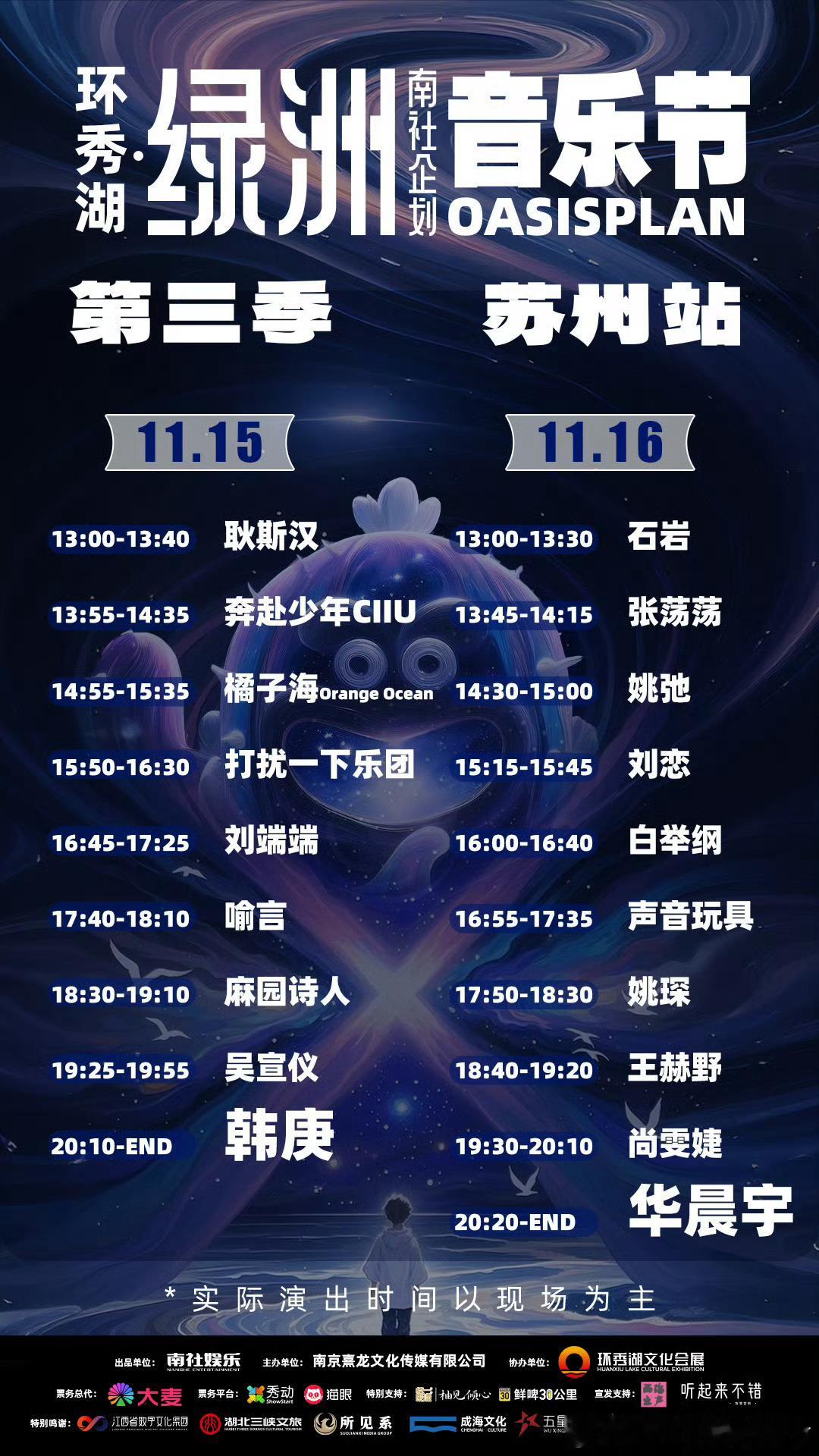 wxy 那个绿洲音乐节苏州站咱们吴选的时间是这个哦