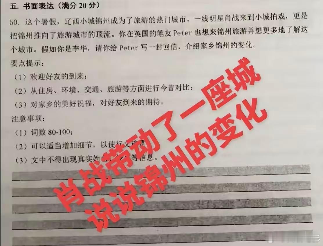 肖战登锦州英语作文! 肖战登上了锦州期中考试的英语作文!