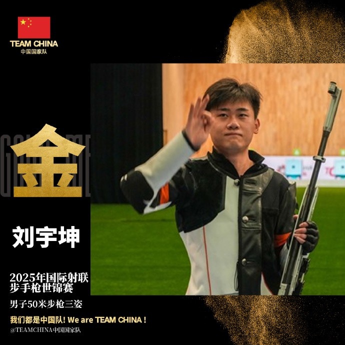 刘宇坤首次获得该项目世锦赛冠军,继去年巴黎奥运会后再次夺冠,他成为2014年朱启南之后中国历史第二位世锦赛男子三姿冠军,这是中国射击队本届世锦赛第三个奥运项目金牌,也是中国射击队本届世锦赛第7金。