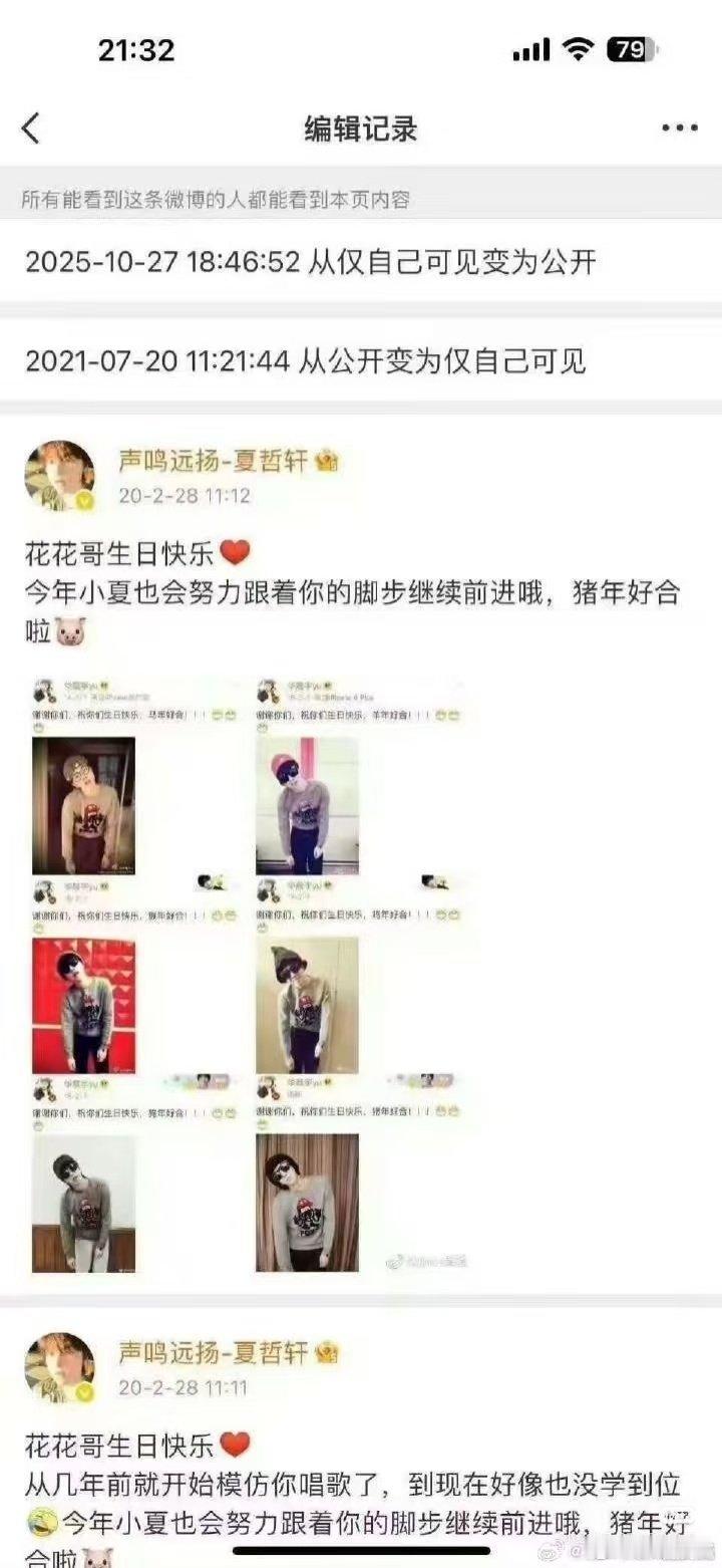 总决赛前的小插曲!夏哲轩公开给华晨宇的生日祝福,遭粉丝质疑。他发长文回应,坦言是花花多年歌迷,公开是因能同台唱歌的自豪,证据超有力~