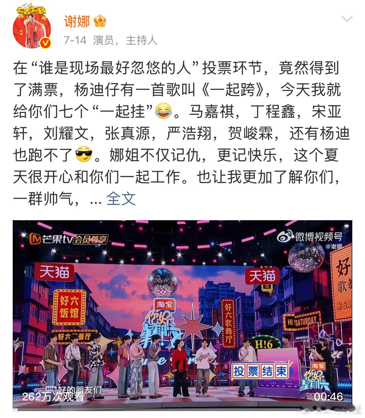 谢娜的“挂人”环节简直是双十一晚会的一大亮点!她和时代少年团的互动充满欢笑,每一次挂人的时刻都特别好笑,真是充满了喜庆的氛围!