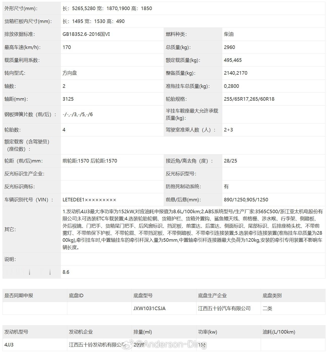 我们即将迎来全球最强的五十铃D-MAX皮卡。事情是这样的:2019年江铃国产第三代D-MAX的时候只保留了RE4E的1.9升四缸柴油机,目的当然是为了满足日益严苛的环保法规,上代车型上还有的4JJ1 3.0升机器就没有延续过来,因为那个只能满足国五。而在东南亚、澳新、南非这些市场上则是1.9和3.0都能买到。不过1.9的发动机功率还不如国内的130kW,而是110或者118kW。后来升级成RE4F的2.2机器之后小幅提升至120kW的水平。而3.0的4JJ3则是140kW的水准。而这个月工信部申报的国六版3.0升D-MAX则把功率拉到了155kW也就是约合210马力的水平。要知道目前在售的同级别柴油皮卡比如福特Ranger、长城炮、日产Frontier Pro可都是190马力左右的水平。国产的4JJ3不仅动力全球最强,价格也有可能是全球最低的。目前在售的1.9款式配置拉满20万出头,3.0的版本贵个一两万差不多了。要知道澳大利亚市场最贵的3.0 Blade版裸车可是8万澳币,差不多要38万元了...