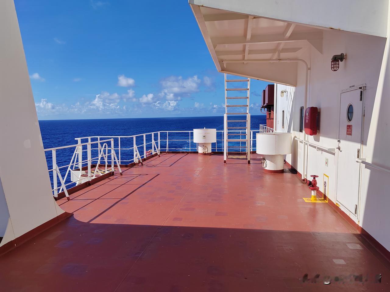 今天的海况比昨天好多了,谈不上风平浪静,最起码不摇不晃了,吃了早餐,赶紧做好茶点(甜甜圈),趁着发酵的时间,走出生活区,吹吹海风,晒晒太阳。 到了甲板上,拿出了手机,打开地图看了一下定位,哇,原来是马上就要到赤道了!怪不得这两天一干活就出汗!我还寻思是身体又出现了状况吗?现在在厨房里做饭,哪怕是早上,就是开着空调,做完一餐,都会热的大汗淋漓,甭说甲板部在太阳底下敲绣刷漆,轮机员里闷热的高温下维修机器,那种感觉,没跑过船的人,是永远体会不到的。 中午吃饭的时候,有个兄弟说,大厨,天气这么热了,该熬绿豆汤了!我说好啊!多亏了您的提醒,我都忘记了,这两天啊!我也正愁着做什么汤呢!晚餐做了炒鸡,麻辣豆腐,西葫芦炒鸡蛋和绿豆汤! (看看大海的蓝色,是不是特别的治愈心情)