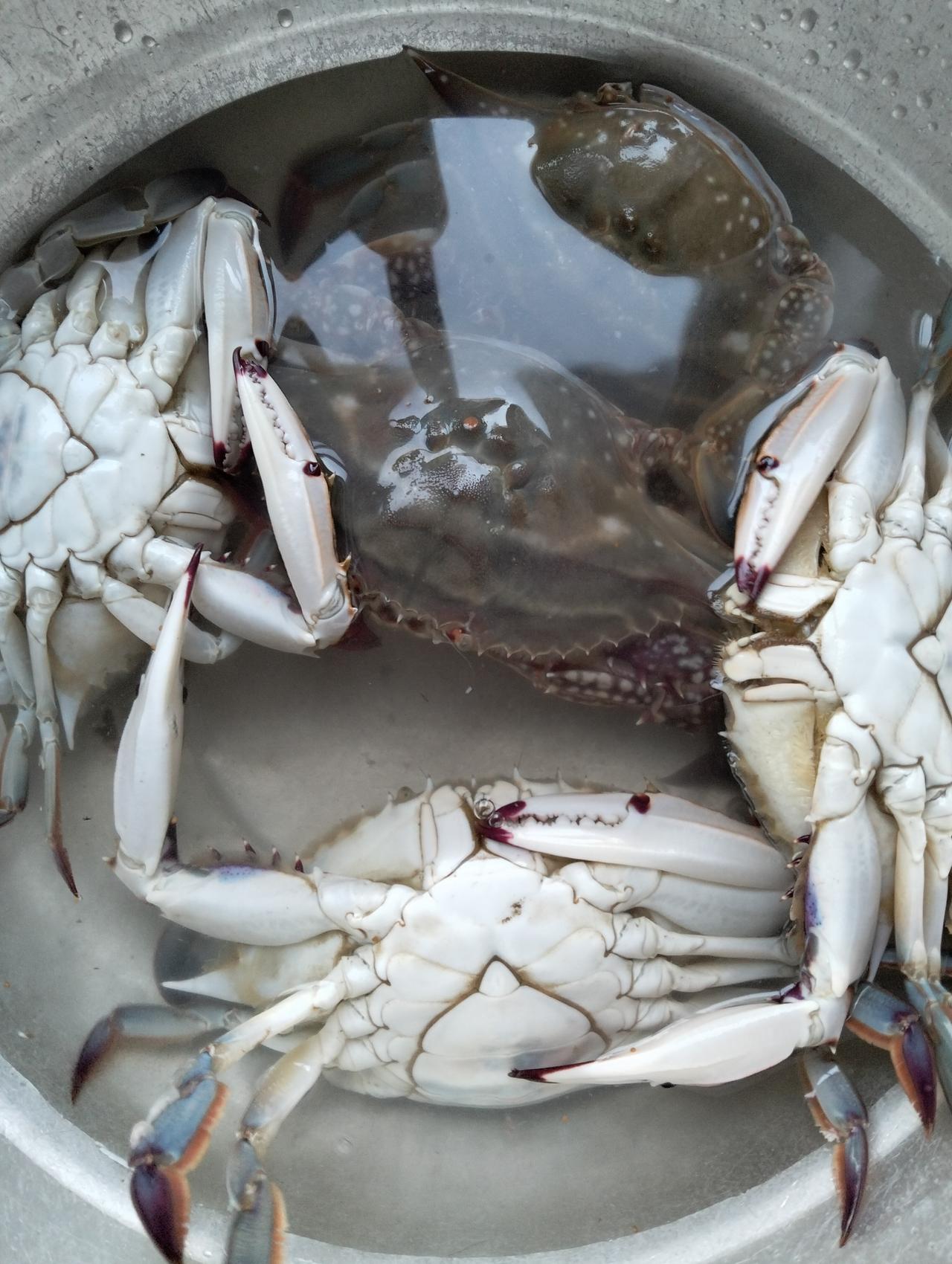 我今天买了5只母螃蟹一斤八两,花了90元钱。西口码头与九田水产批发市场有一个区别,西口码头的海鲜都是小渔船从近海现捕的,一上岸就现卖。特别新鲜,螃蟹个个张牙舞爪,大部分都没有绑皮套,去拿时一定要小心,别让它的大爪子钳到。我三天前手指头被它夹破了四个小口,到现在还疼。 连着去码头几天,今天我在公交车站点等车,有一个渔市摊主已经认识我了,回家路上停下电动自行车与我聊了一会。 摊主告诉我,货卖完了,回家做饭。 ‘’2点渔船回港,3点怎么就卖完了货?‘’ “哎,现在海里没有多少东西,有时候渔船出去一趟,油钱都挣不回来。”