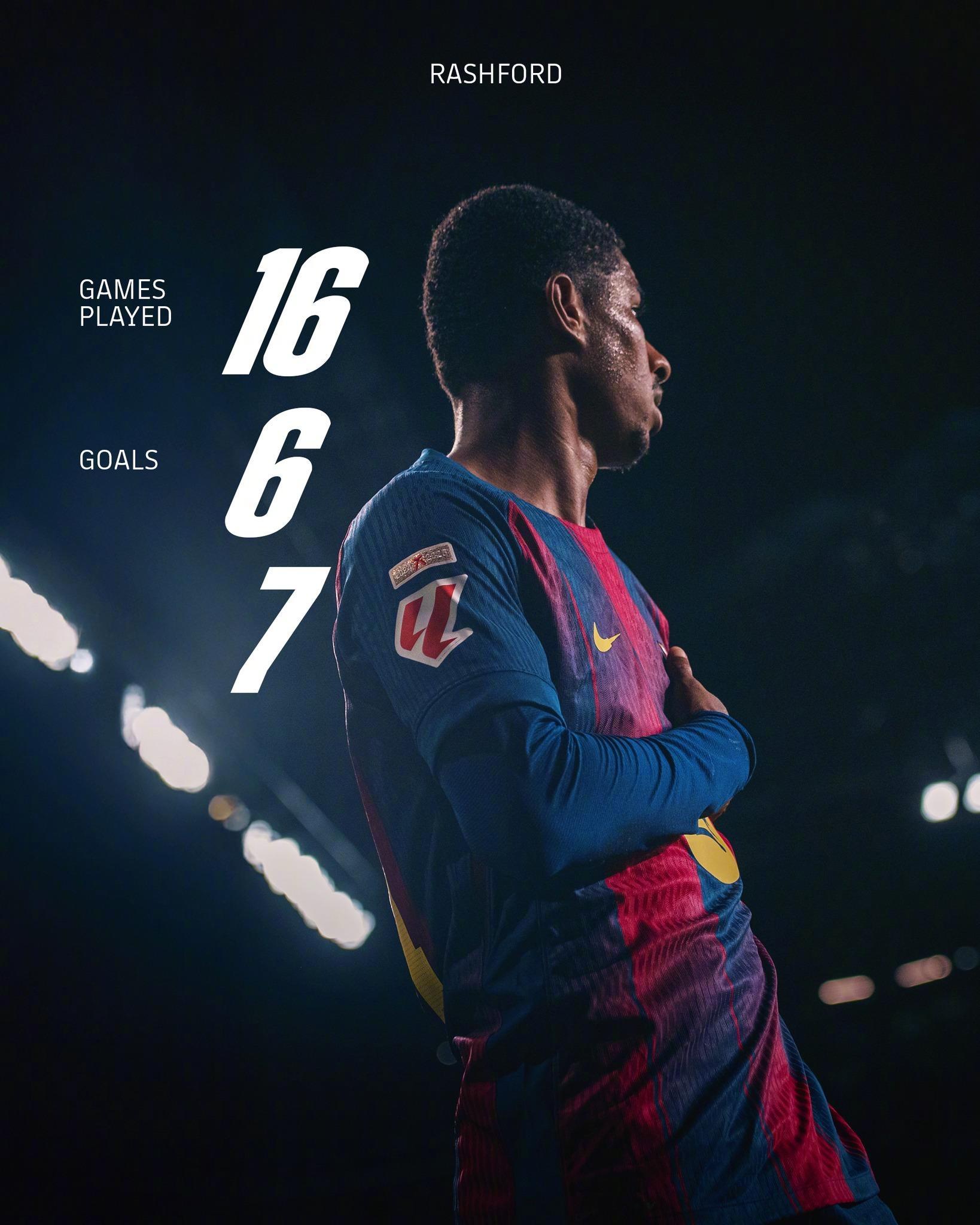 1️⃣6️⃣场比赛6️⃣粒进球⚽7️⃣次助攻🅰️🫡是现在的拉什福德🔴🔵