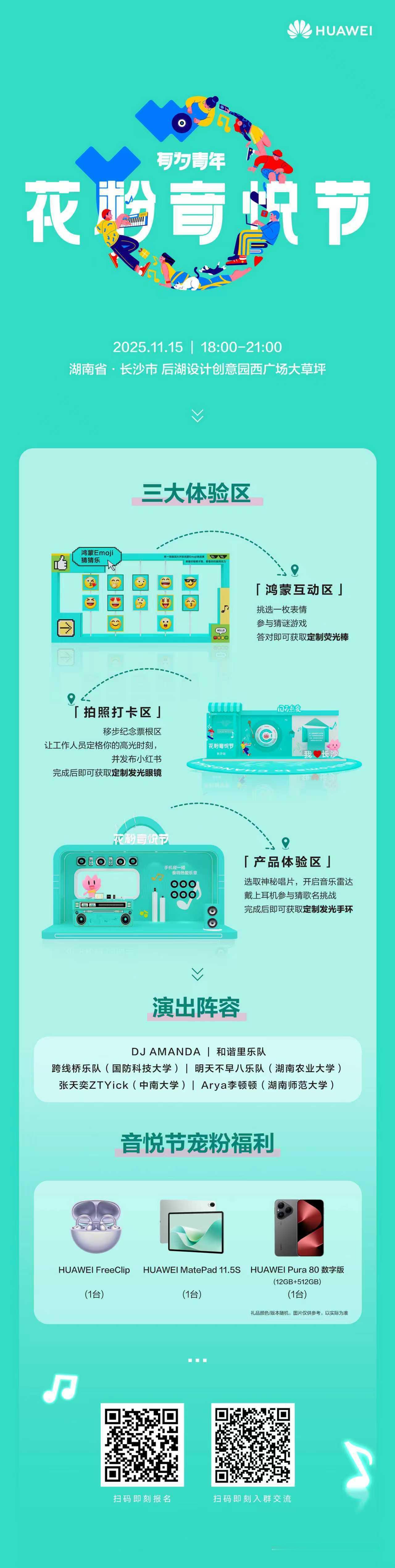 花粉们的音乐节来了,在本周六晚的后湖大草坪,感兴趣的可以去看看,还有机会获得华为手机、平板和耳机