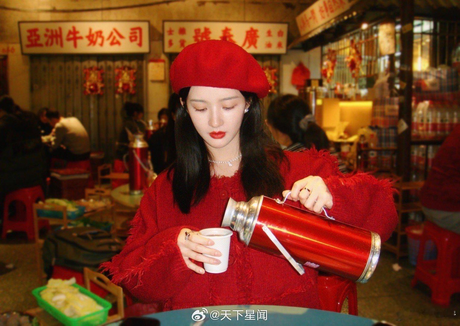 刘亦菲喝醉酒微醺的状态被拍到,脸上已经泛起了红晕,被拍到后眼神微怒