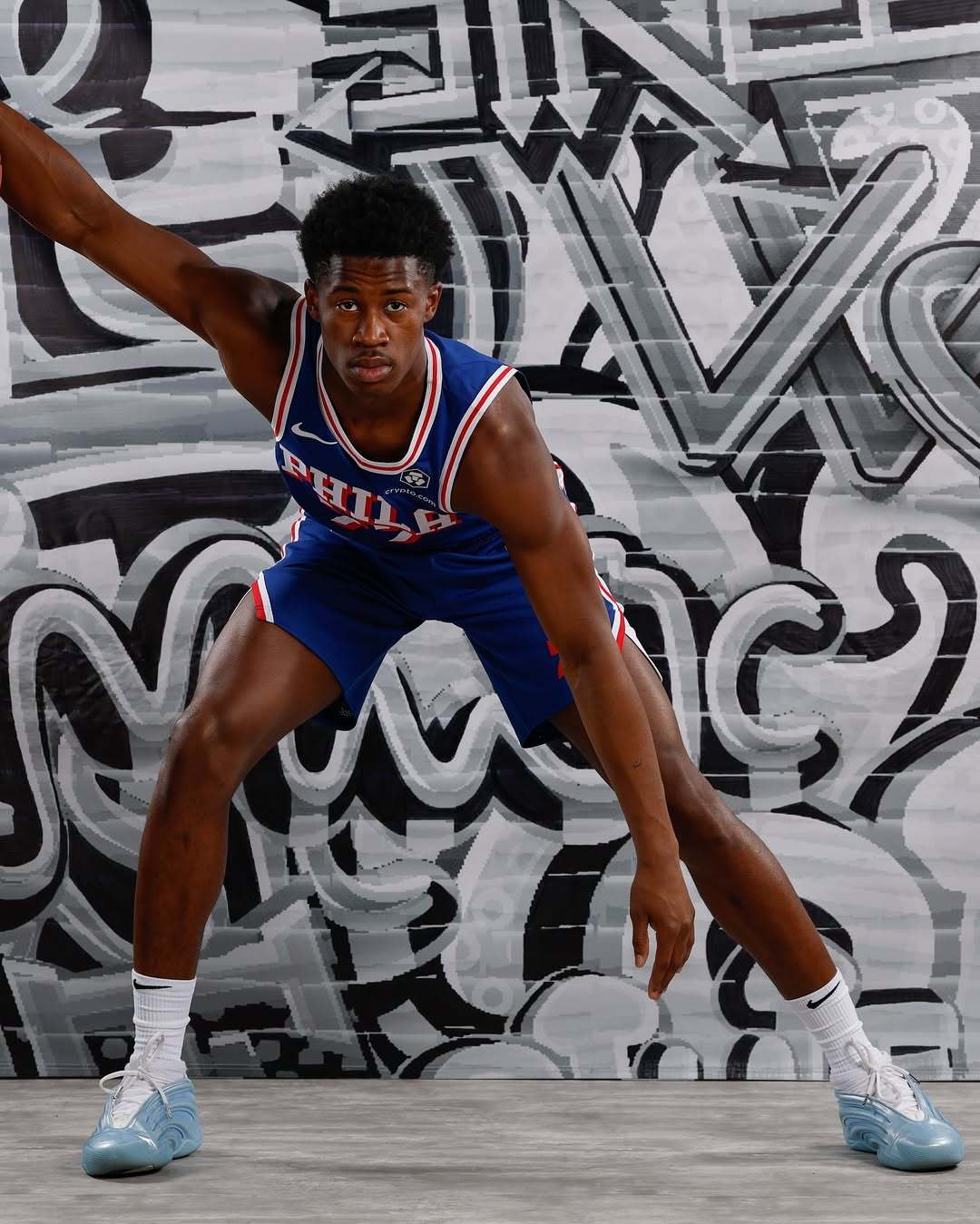 76人新秀VJ穿的哈登9“Ice Metallic” 配色。