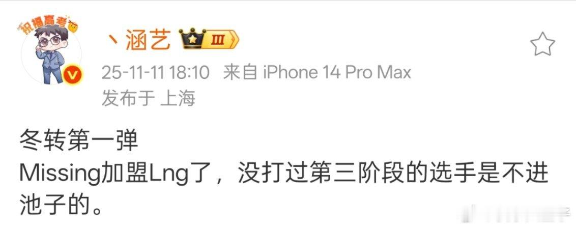 涵艺连曝两个辅助料:1.Missing去LNG,应该跟万磊兄弟lol去了2.ON不一定离队,是好快的和好嘛