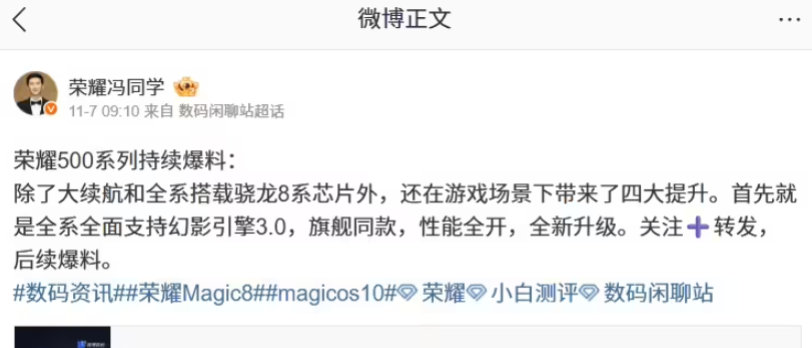 【荣耀400系列全球发货量突破600万台】荣耀销售与服务总裁王班宣布,荣耀 400 系列交出最新成绩单:全球发货量突破 600 万台!这份热销,源自每一位用户的信任与选择。精彩不止于此,全新荣耀 500 系列即将发布,值得期待!在 9 月 8 日的时候,王班就宣布荣耀 400 系列全球累计激活量突破 300 万台,虽然这两个指标不太相同,但是也可以提供参考。荣耀 400 系列仅用了短短两个月的时间,出货量便冲刺了 300 万台,这个增长速度是非常强势的。这其实从近期双十一热销机型榜单也能看出来,荣耀 400 每周都是名列前茅,整体的成绩自然也不会差。作为一款 5 月份上市的产品,荣耀 400 系列爆发出来的能量是非常大的,而接棒者荣耀 500 系列也即将发布,这一次跳水冠军陈芋汐担任实力影像体验官。从产品力来看,荣耀 500 系列的各方面配置都会进行补强,尤其是续航和设计,后续销量非常值得期待。另一方面,荣耀 400 系列的产品力还将继续释放,一直到明年的上半年,荣耀 400 系列如果价格再降一点,市场竞争力会再次补强,很有希望冲击 1000 万的全球出货量。