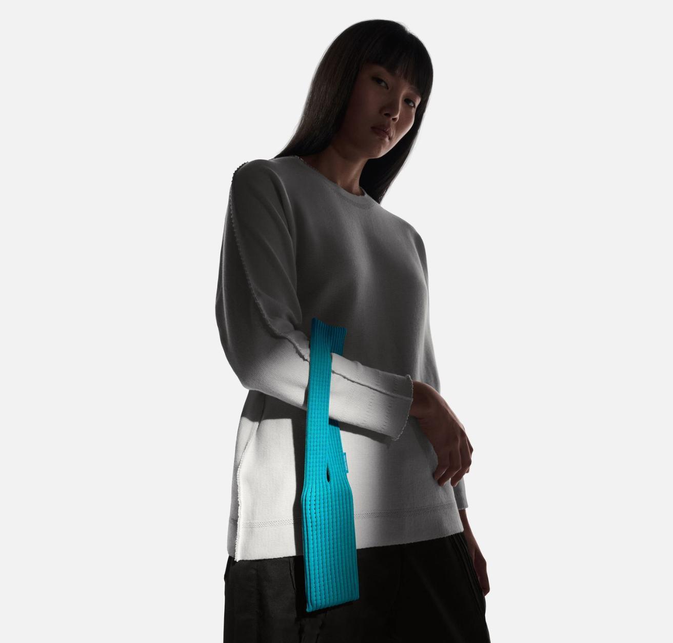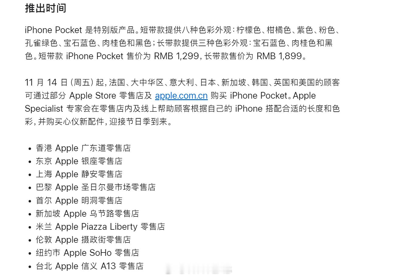苹果官网上了个很有意思的配件,和日本时尚品牌 ISSEY MIYAKE 合作推出的,叫 iPhone Pocket,一体式三维编织构设计,用于携带 iPhone、AirPods。色彩选择挺丰富的,短带款售价 1299,长带款售价 1899,国内大陆地区仅在上海 Apple 静安零售店有售。