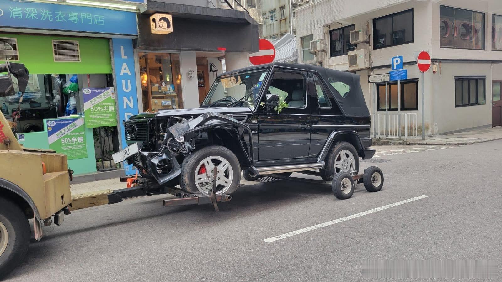今天最轰动香港的一次车祸,又少1台双门大G,还好司机陈导演还在那里打电话