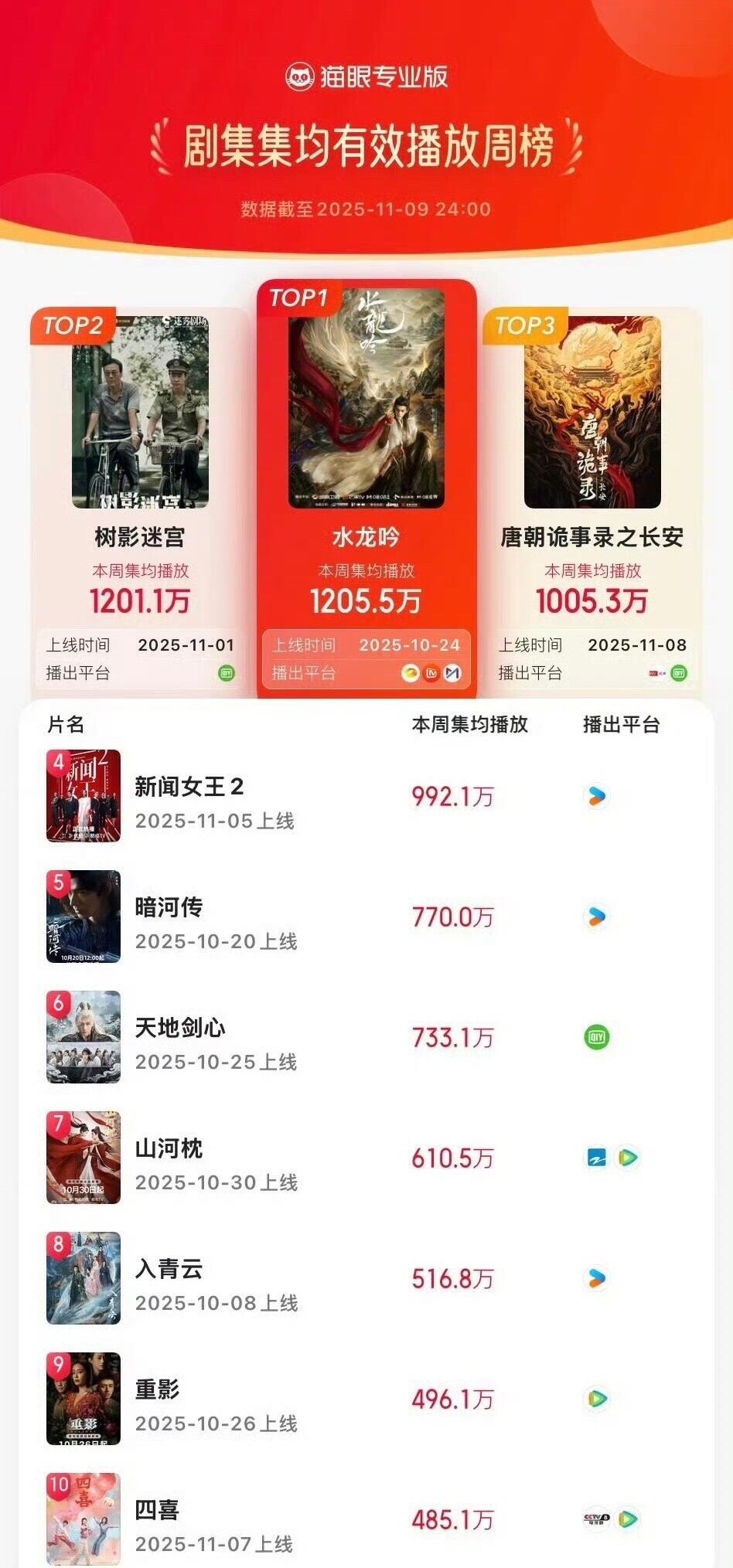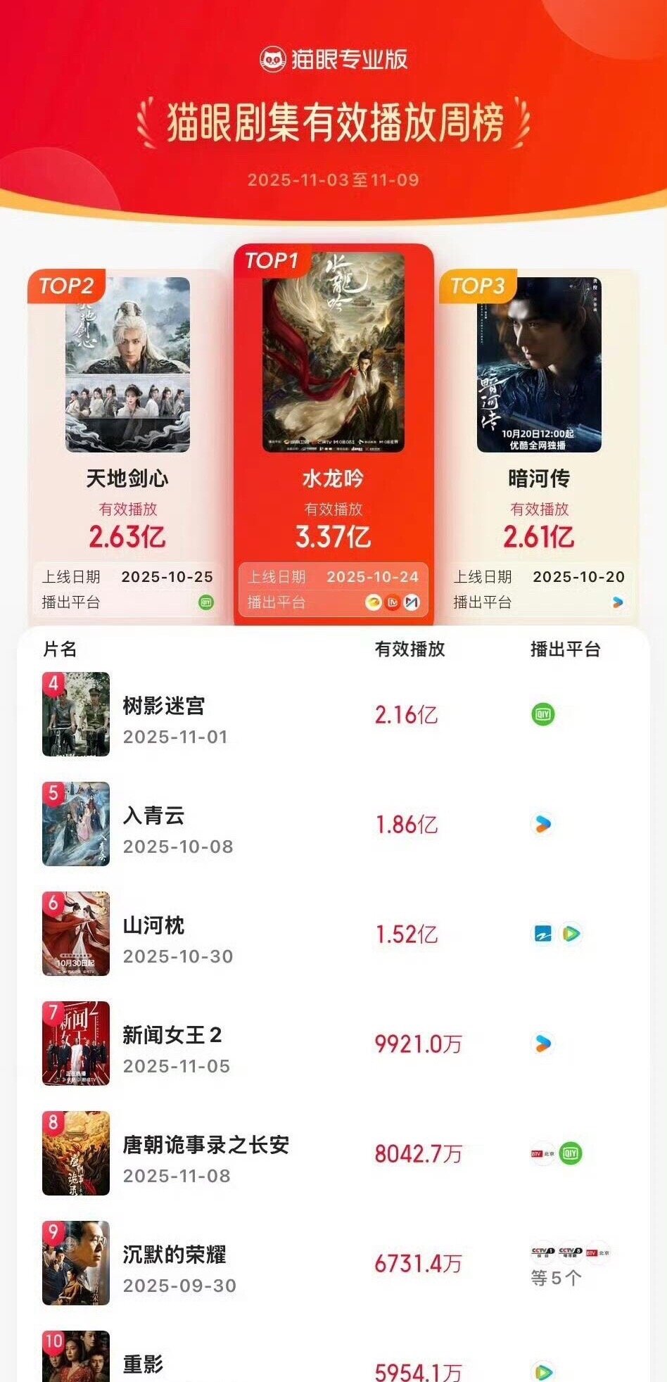 上周罗云熙水龙吟播出效果相比较还是很不错的,都是top
