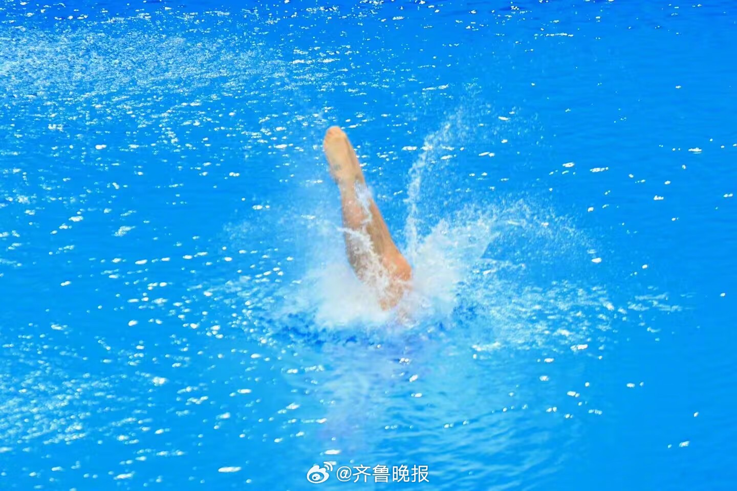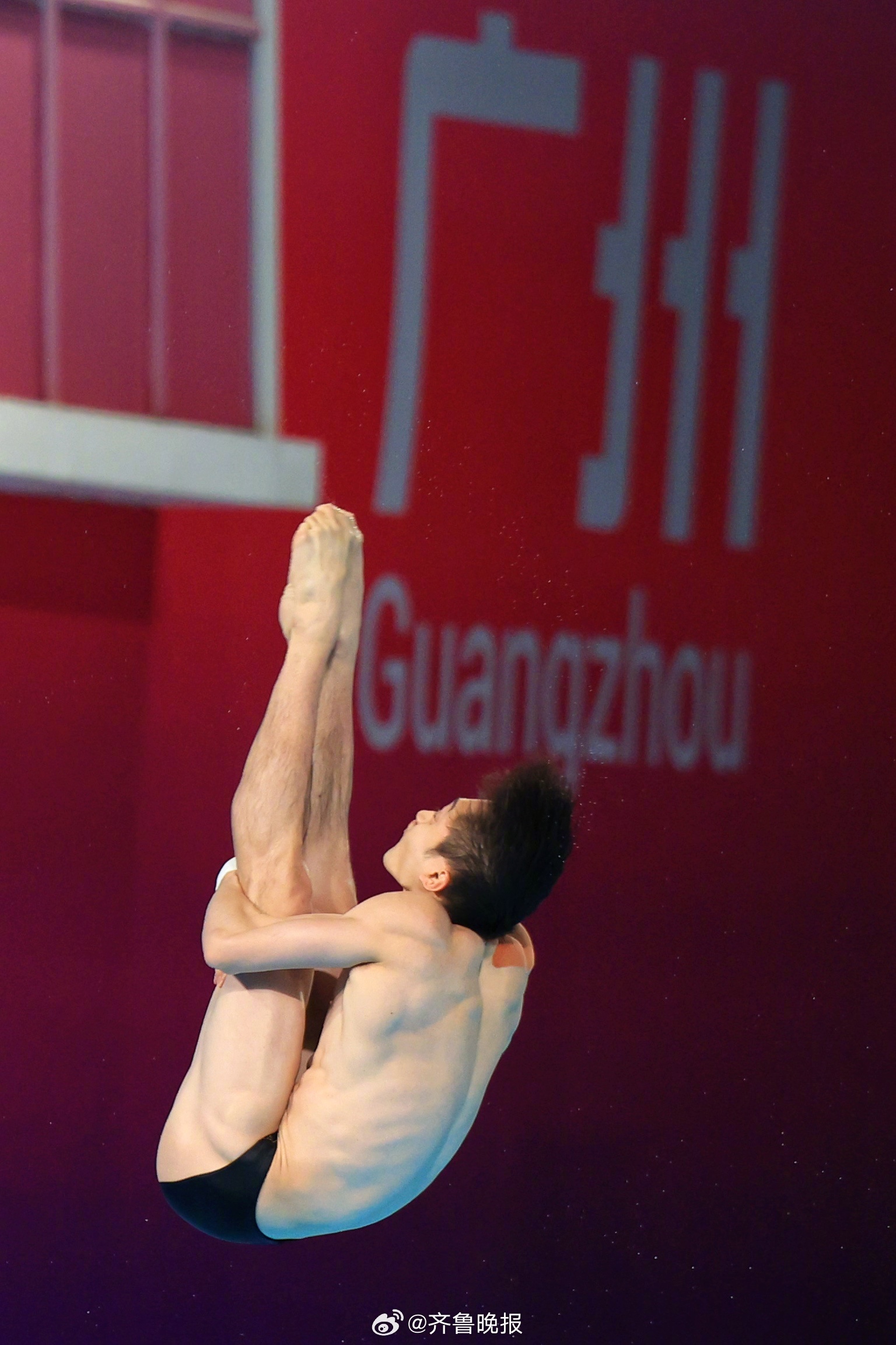 【十五运跳水男子10米跳台决赛练俊杰夺金】11日晚,十五运跳水男子10米跳台决赛结束,练俊杰勇夺金牌。(齐鲁晚报齐鲁壹点 王鑫 发自广州)
