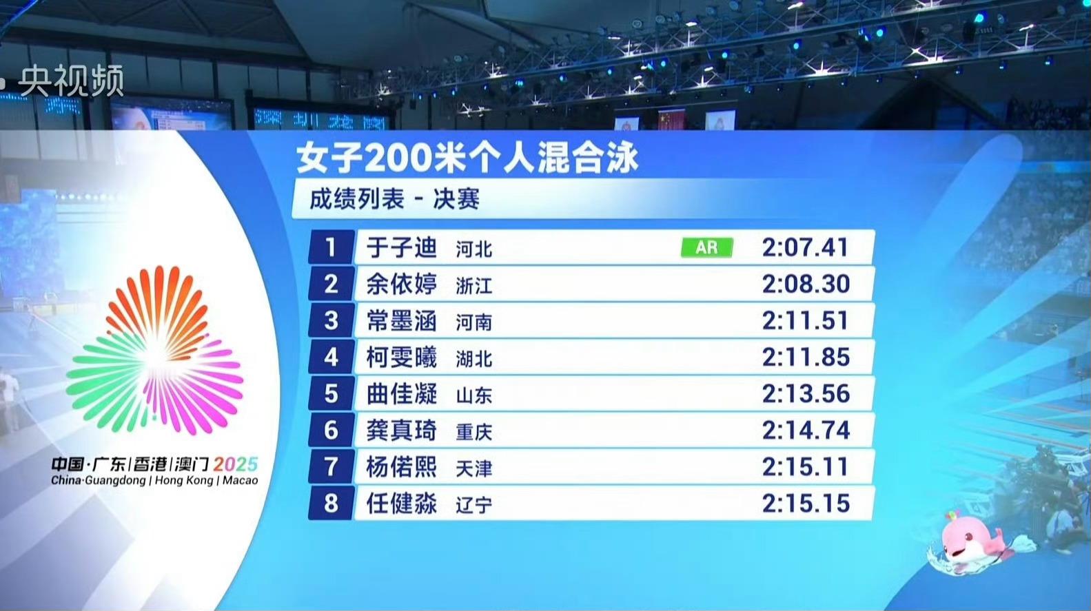 游泳项目女子200米个人混合泳决赛,年仅13岁的河北新星于子迪,以打破叶诗文亚洲纪录的表现,力压浙江名将余依婷,勇夺冠军。垄断了国内该项目多年的余依婷,恐怕就此丢掉该项目的统治地位了。