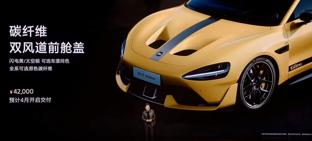 专利摘要显示,本产品的整体用于汽车,本产品的局部用于汽车的机盖。设计要点在于形状。此前,小米汽车对此在5月8日发文回应时表示,小米SU7 Ultra的碳纤维双风道前舱盖,在满足复刻外造型的需求之外,还提供了部分气流导出和辅助前舱散热功能。“我们对此前信息表达不够清晰深表歉意,我们将采取以下措施:对于未交付的订单,我们将提供限时改配服务,可以改回铝制前舱盖;对于已提车和在本次限时改配结束前选配碳纤维双风道前舱盖的锁单用户,将赠送2万积分以表诚意。”